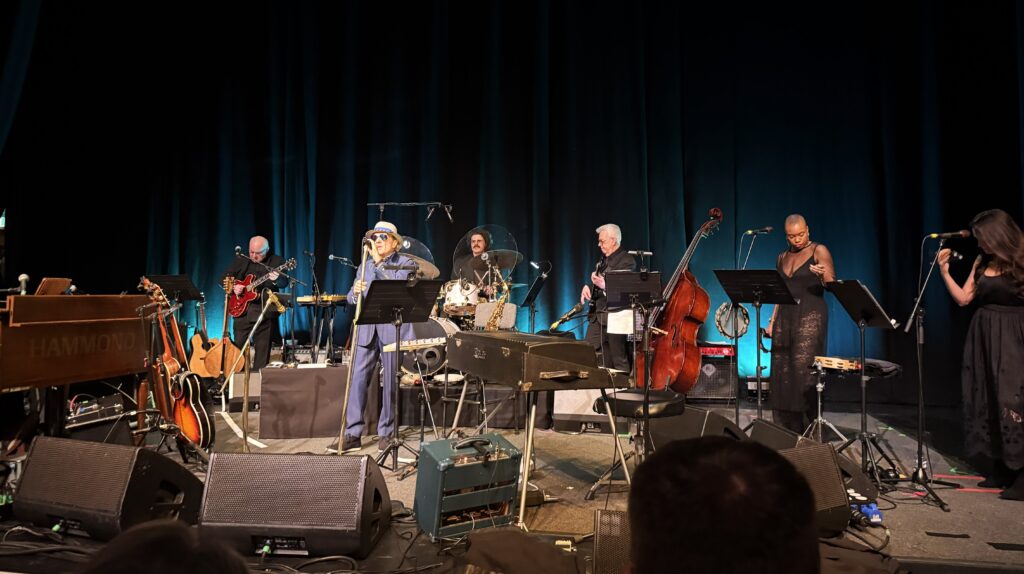 今夜のハイライトはヴァン自作のブルース曲「Ain’t Gonna Moan No More」。終盤の長いうめき声(moan)の繰り返しに歓声が上がり、スタンディングオベーションが起こる(録画できなかったのが悔やまれる)。ライブで何度も観たことのある曲だが、これほどねちっこい歌唱ははじめて。昨夜の打ち解けた雰囲気とは一変してMCは一度もなく、シリアスにショウは進む。