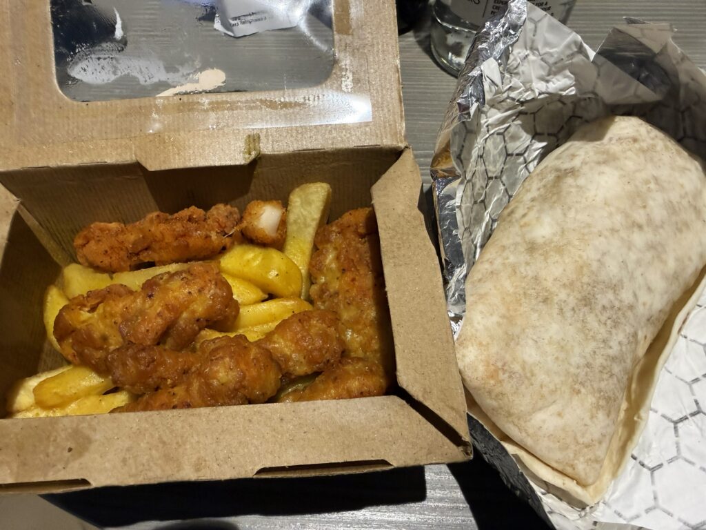 強風でカラダが冷えて温かいものを食べたくなり、別のミニスーパーで「チキンを巻いた何か」と「フライドチキンとフライドポテトにチーズを掛けたもの」を買ってホテルでビールを飲みながら食べる。間違いなくすごいカロリー。