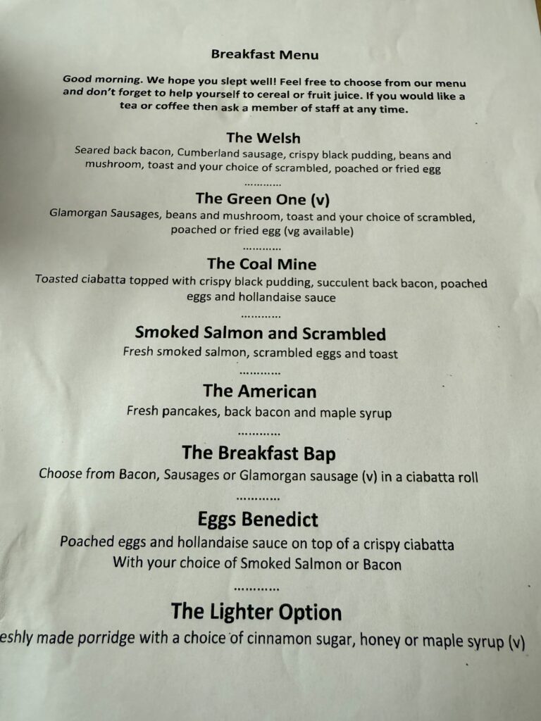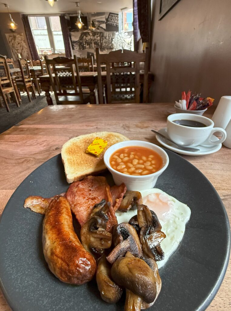 8時半起床。気温15℃で肌寒い。夏休みに入ったばかりだからか、レストランは貸し切り状態だ。朝食は「ザ・ウェルシュ(The Welsh)」を選ぶ。全体的に少し塩気が強い。