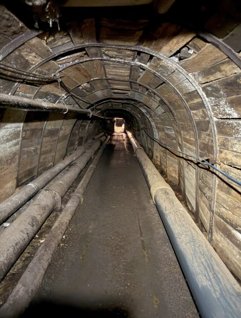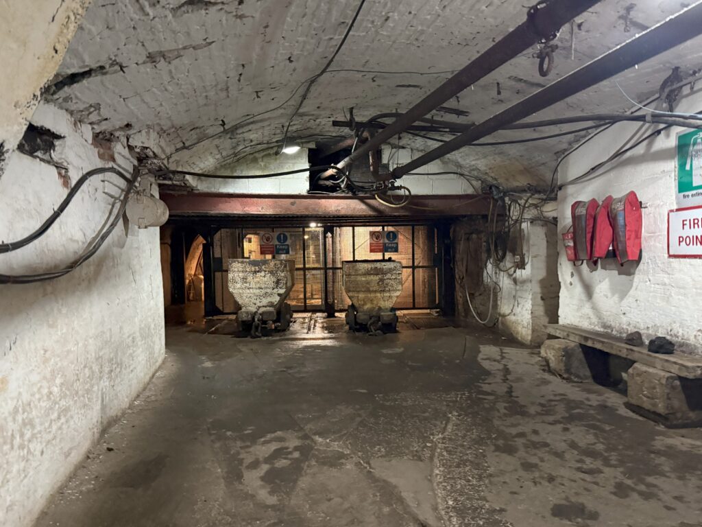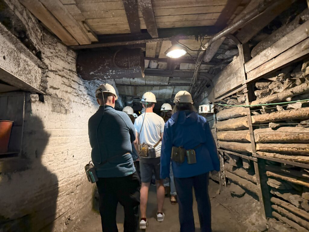 エレベーターに乗り、ツアーガイドの説明を聞きながらドンドン降りていくと、地底のひんやりとした空気と地下水で寒い。真っ暗な坑道の天井は低く、何度も頭をぶつけた。確かにヘルメットは必須だ。当時の作業員の方々の苦労を容易に想像できるツアー。