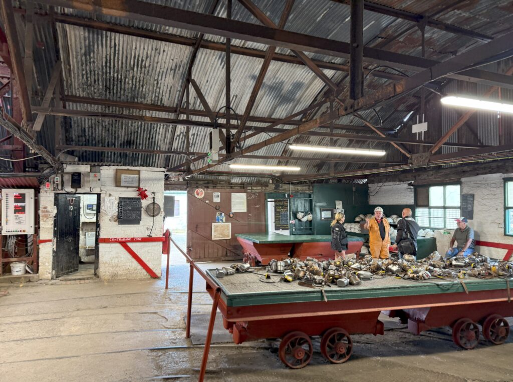 ラッキーなことに、到着後すぐに「地下炭鉱体験ツアー」に参加できた。手荷物と腕時計を預けてヘルメット、ヘッドライトと酸素ボンベを着用。なかなか物々しい。