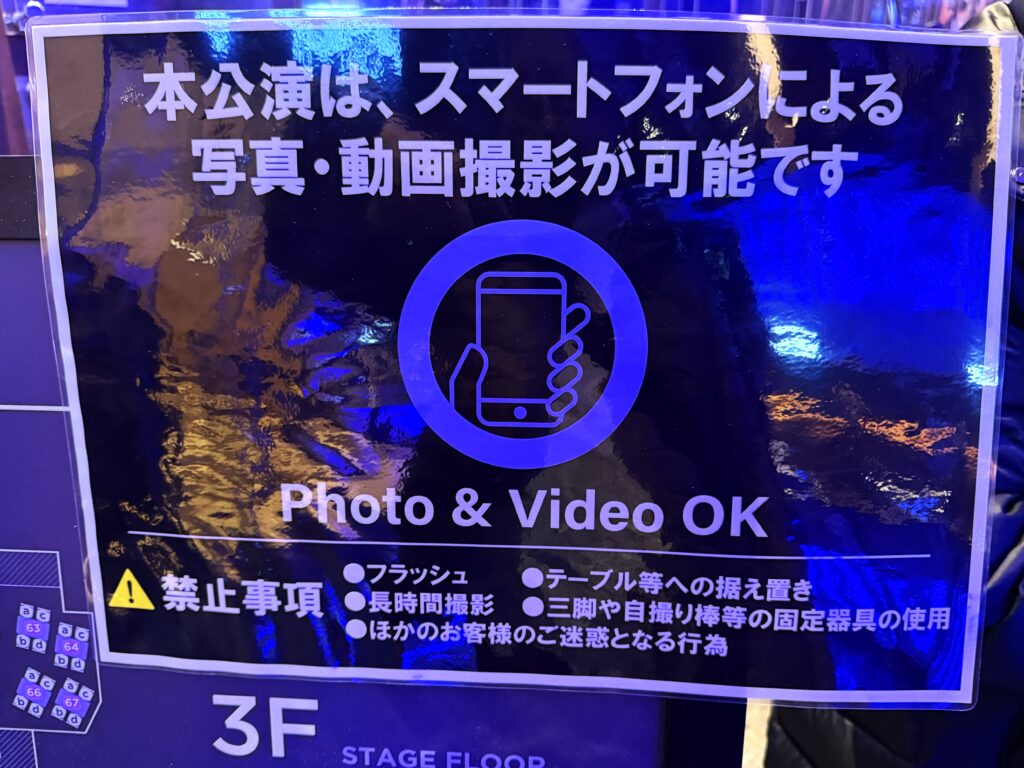 会場はBillboard Live TOKYO、「撮影可」の案内が。
