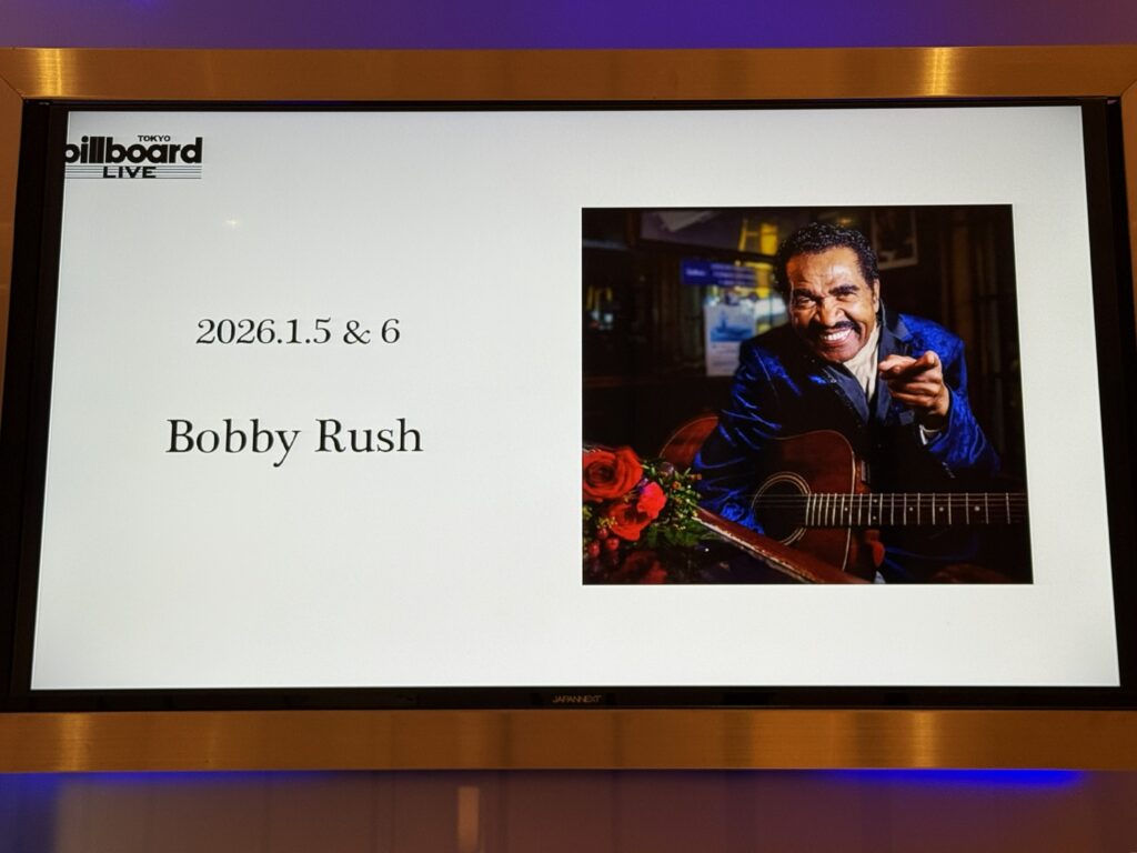 マディ・ウォーターズ、リトル・ウォルター、ジミー・リード、エタ・ジェイムズ、ハウリン・ウルフ、マディ・ウォーターズ、ボビーと共演歴のあるシカゴのブルースマンたちは、みんなとっくに天国に行ってしまった。2026年1月に、最後のブルース・サヴァイヴァー、ボビーのステージを心ゆくまで堪能できた幸運を噛みしめる。