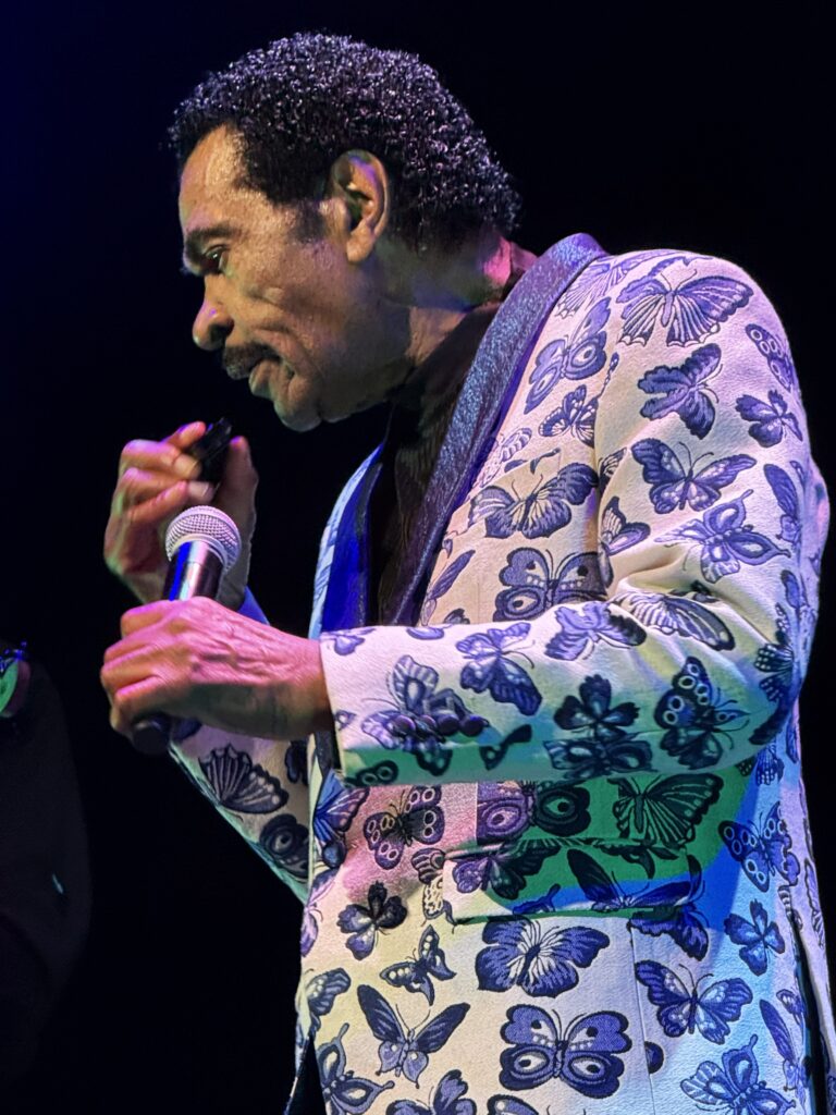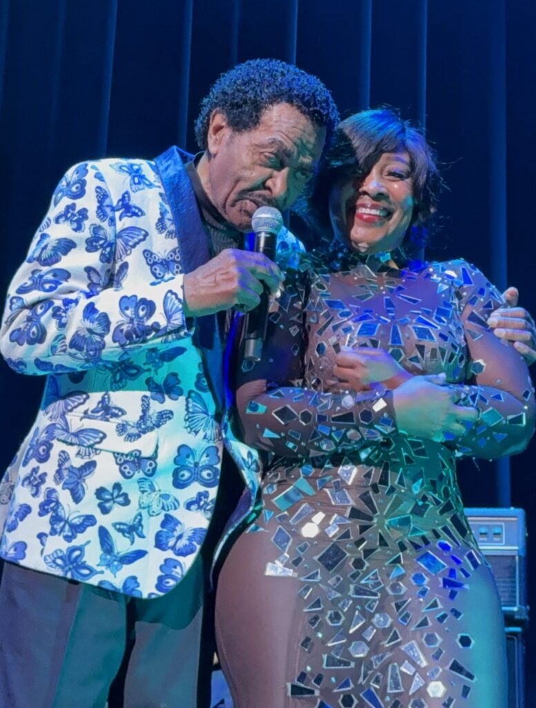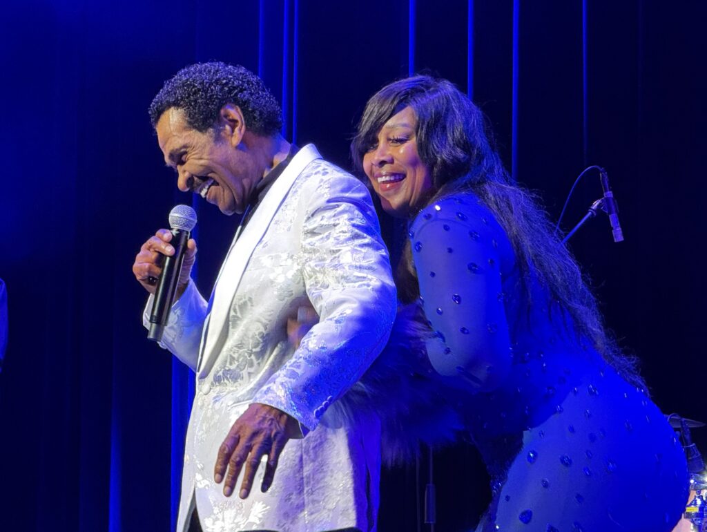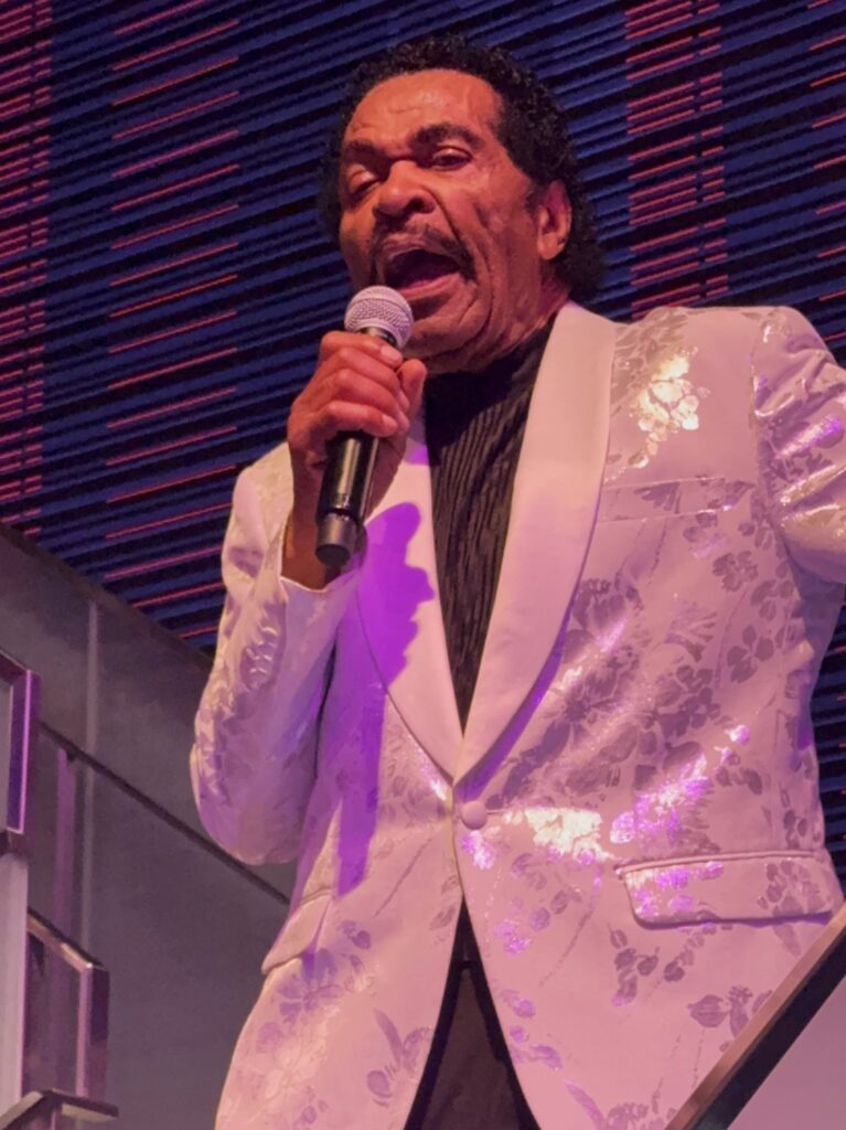 バンドがスティーヴィ―・ワンダーの「Superstition」のカバーで会場を温めたところで、ボビー登場。今夜もロレッタ・ラレット・ハリス・ウィルソン(女性ダンサー兼シンガー)と一緒だ。だいぶ脂っ気は抜けたが、冒頭から下ネタ連発、映画で観た通りのボビーだ。