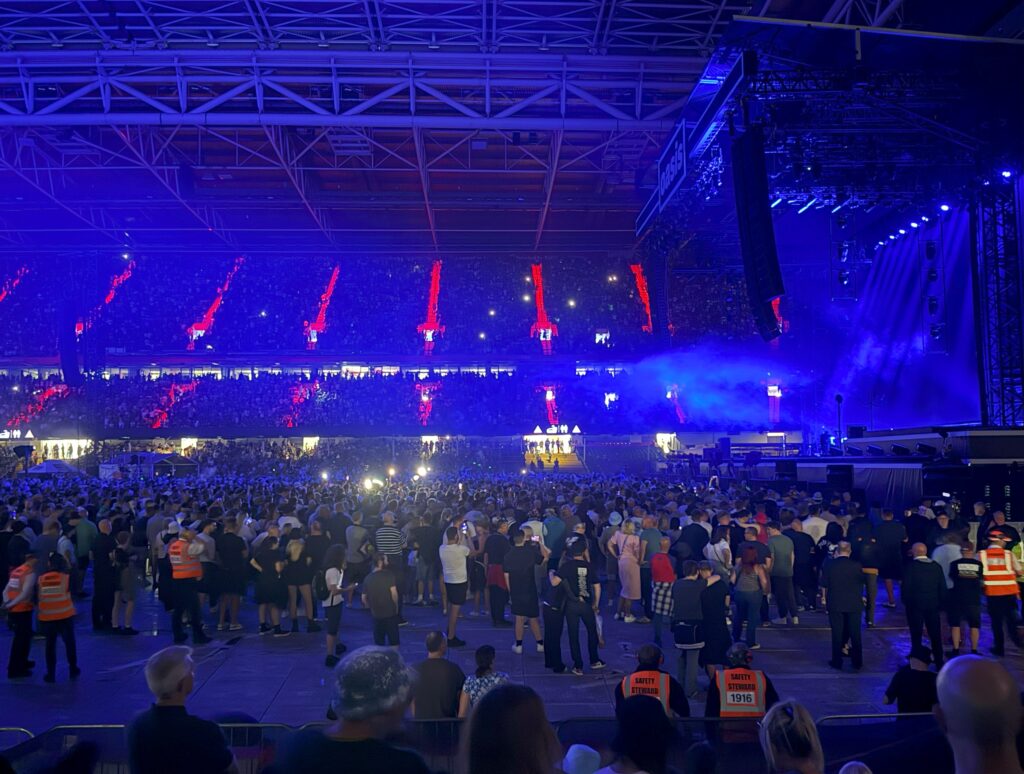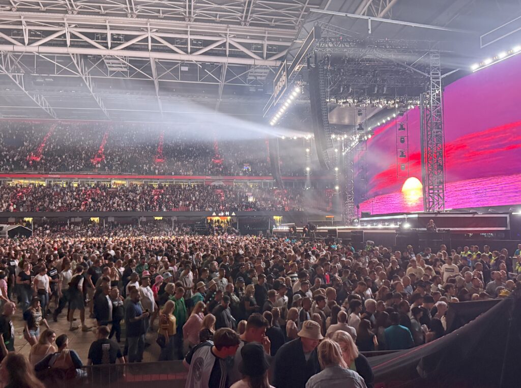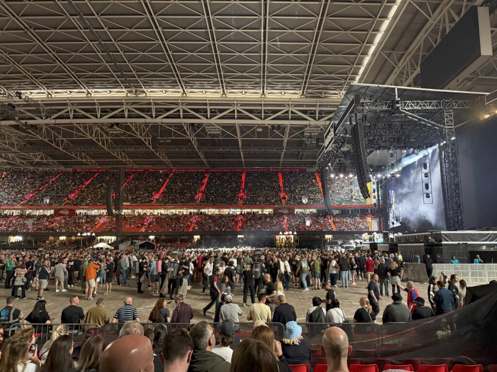 スタンド席からは、昨夜フロントスタンディングエリアで何が起こっていたのか、よく見える。なるほど、あの中にいたら危険だ。ショウ全体を落ち着いて観ることができた。