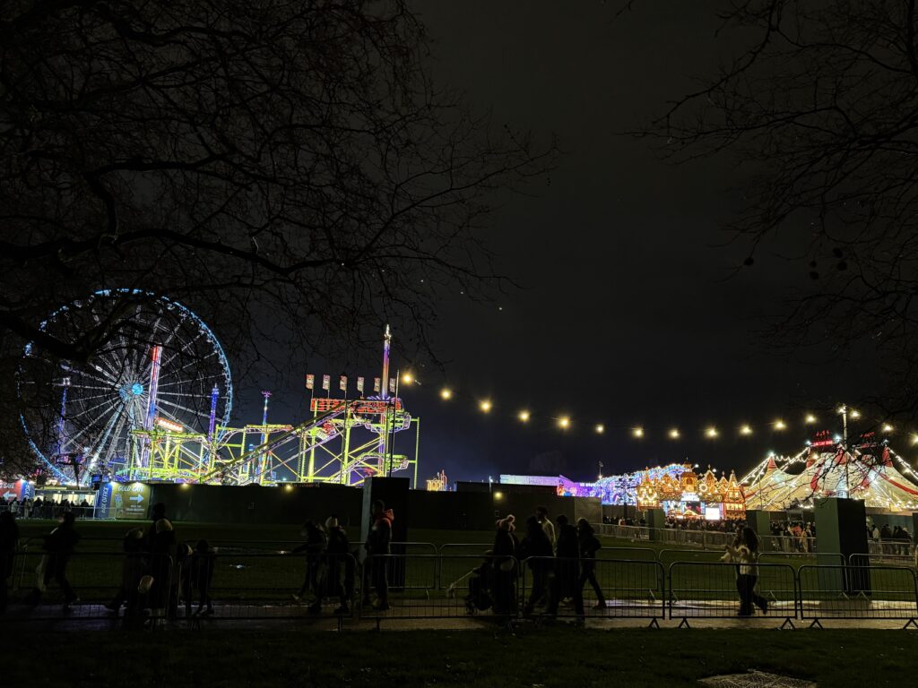 以前から行ってみたかったハイド・パークの移動式遊園地「ウィンター・ワンダー・ランド」に立ち寄る。思いの外壁が高く、遊園地の中はよく見えない。もう少しクリスマスっぽい眺めを期待していたので、残念。