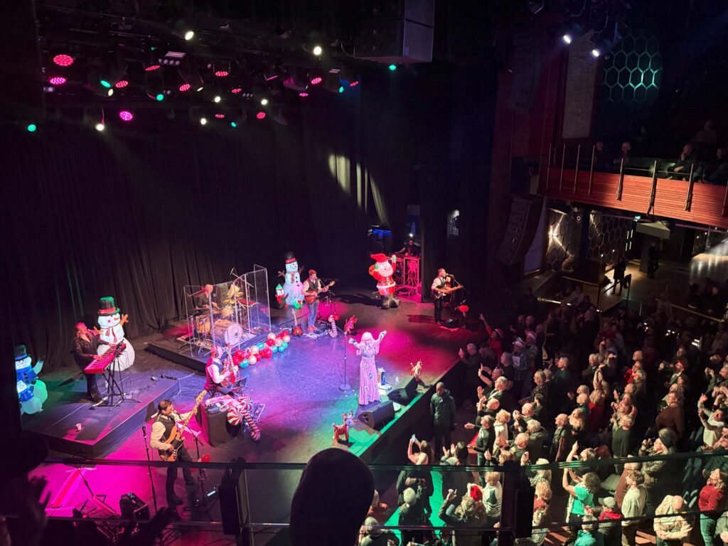 「トーヤ & ロバーツ ・クリスマスパーティー」に相応しく、舞台上は楽しいクリスマスの飾り付け。ただ、1階席はそこそこ埋まっているが、2階は空席が目立つ。どこに行っても人が溢れかえっているクリスマスシーズンのロンドンでこの客入りはなんとも寂しい。