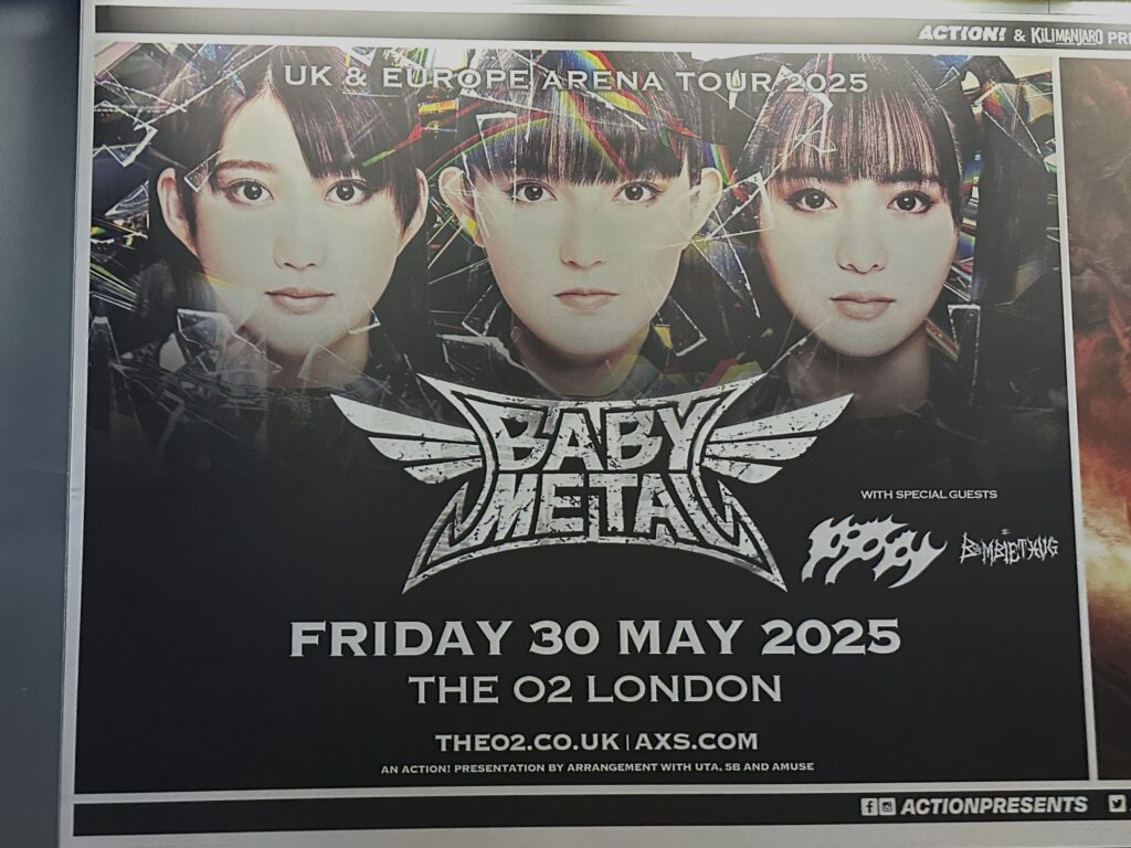 会場近くでBABY METALのライブ告知が目に入る。キャパシティ20,000席のO2アリーナでライブができるなんて、シンプルに凄い。