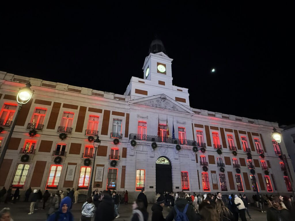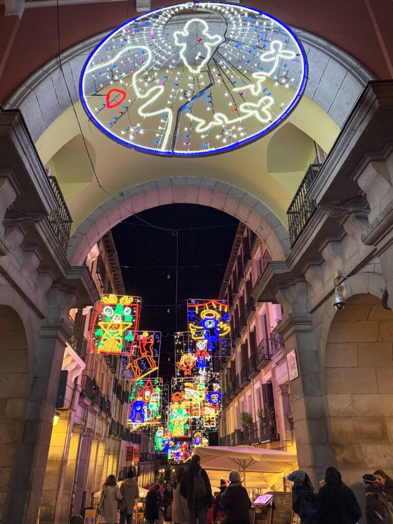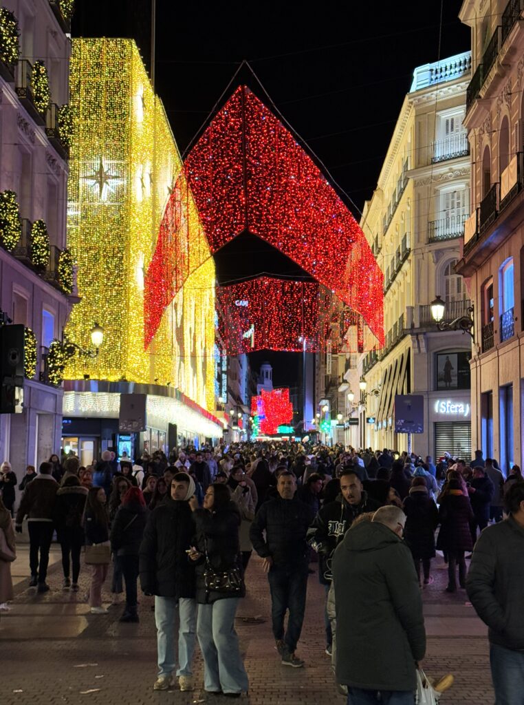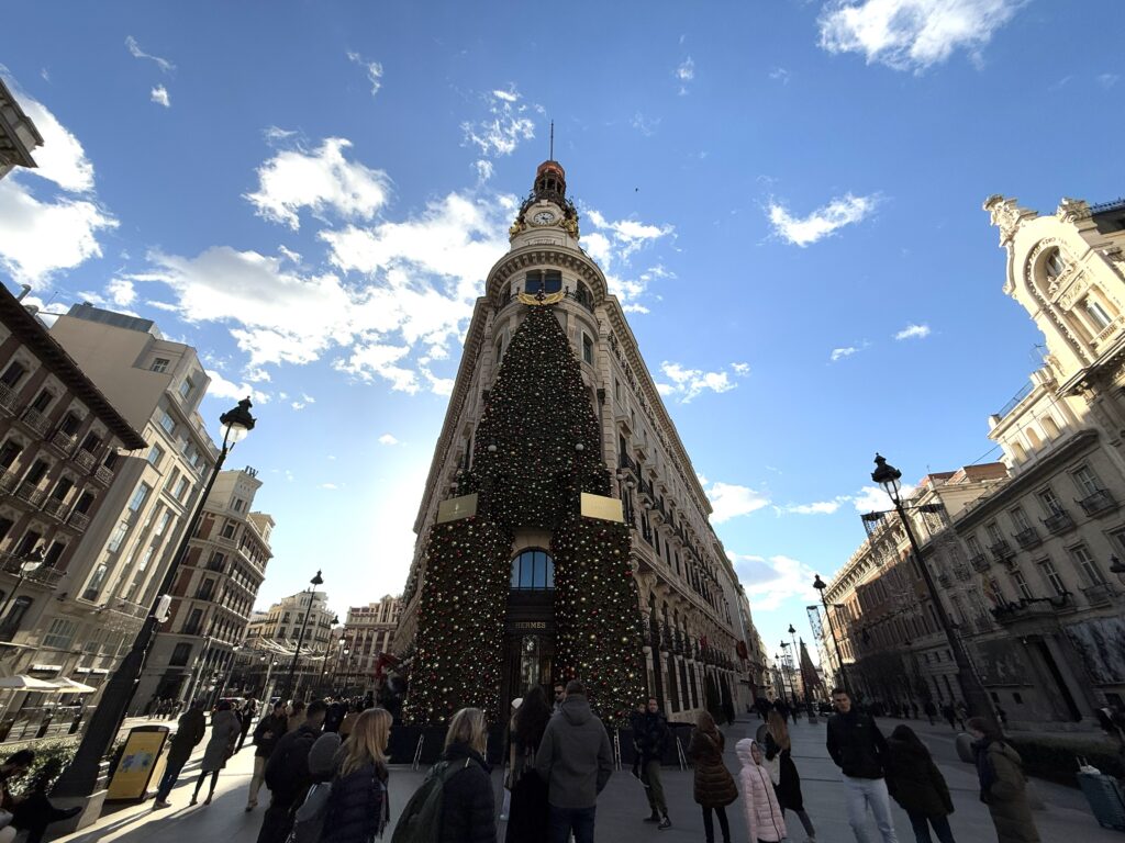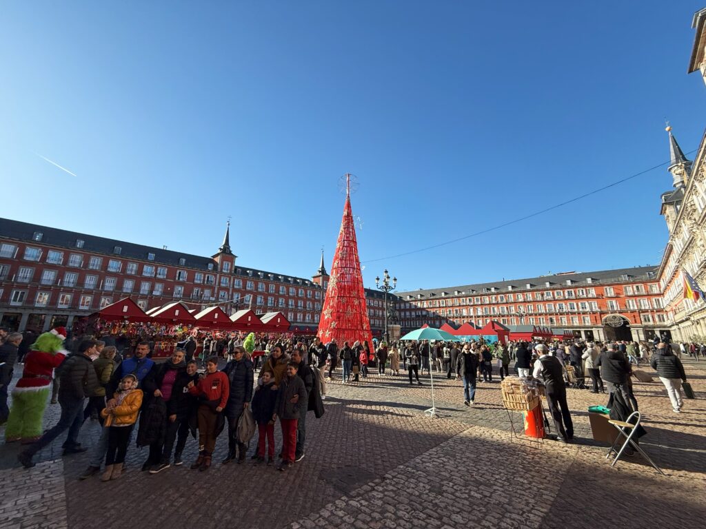 プエルタ・デル・ソル広場は、巨大ツリーですっかりクリスマス気分。女声コーラス隊がマライヤ・キャリーの「 All I Want for Christmas Is You」を練習している。
