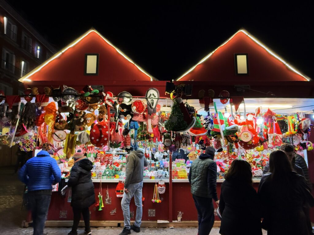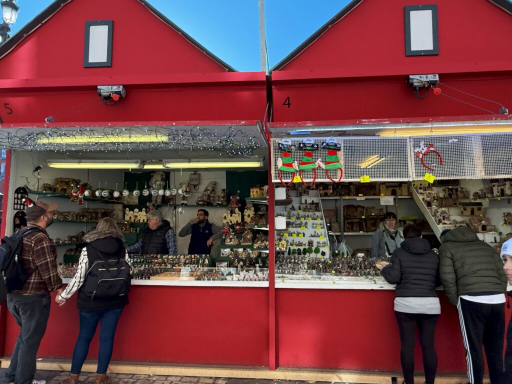旧市街の中心、マヨール広場にはクリスマスの露店が並ぶ。