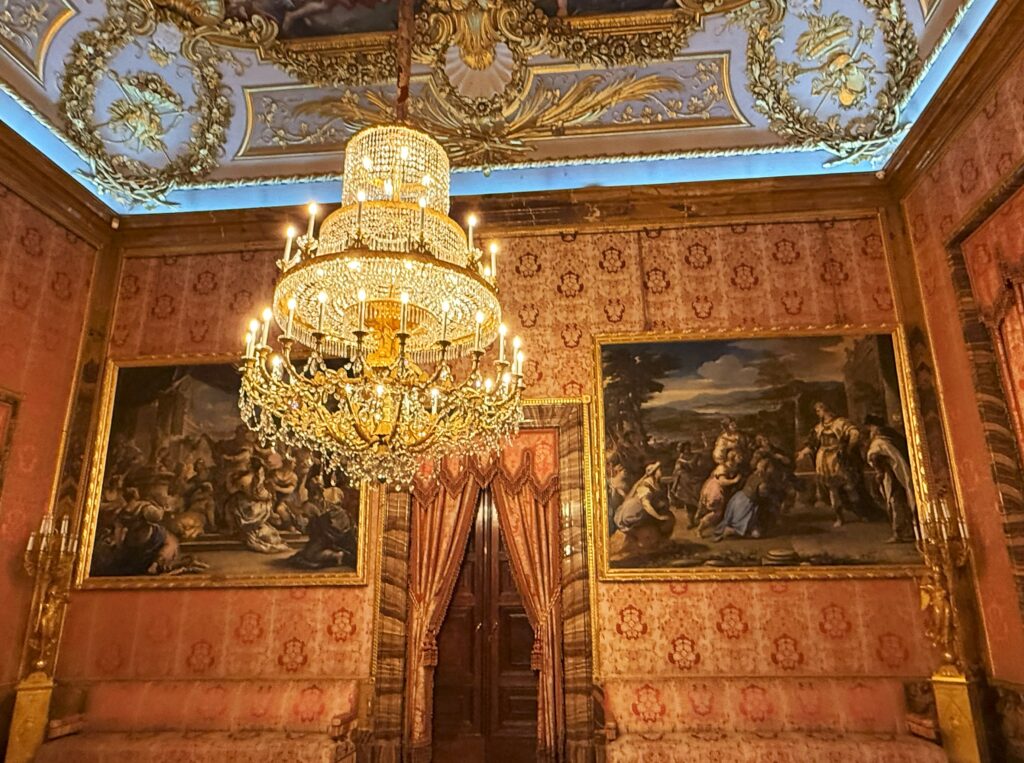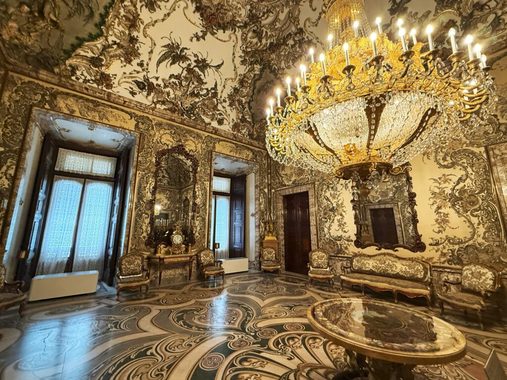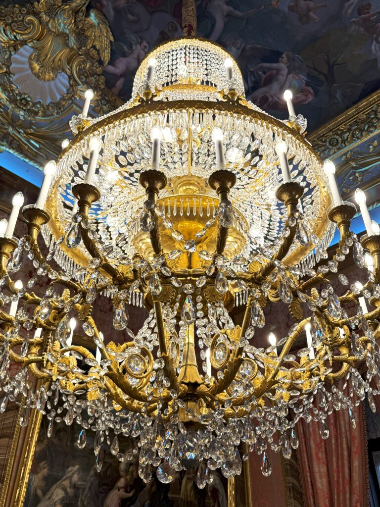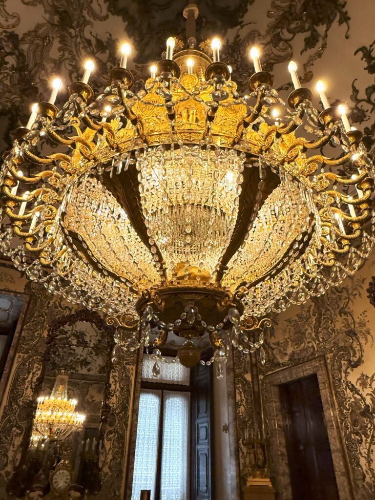 各部屋に豪奢なシャンデリア。すべてが豪華すぎてここで生活するイメージは湧いてこない。