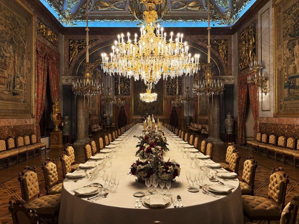 一度に144名が食事できるという「ガラ・ダイニング・ルーム」は見ているだけで、豪華さに酔いそう。