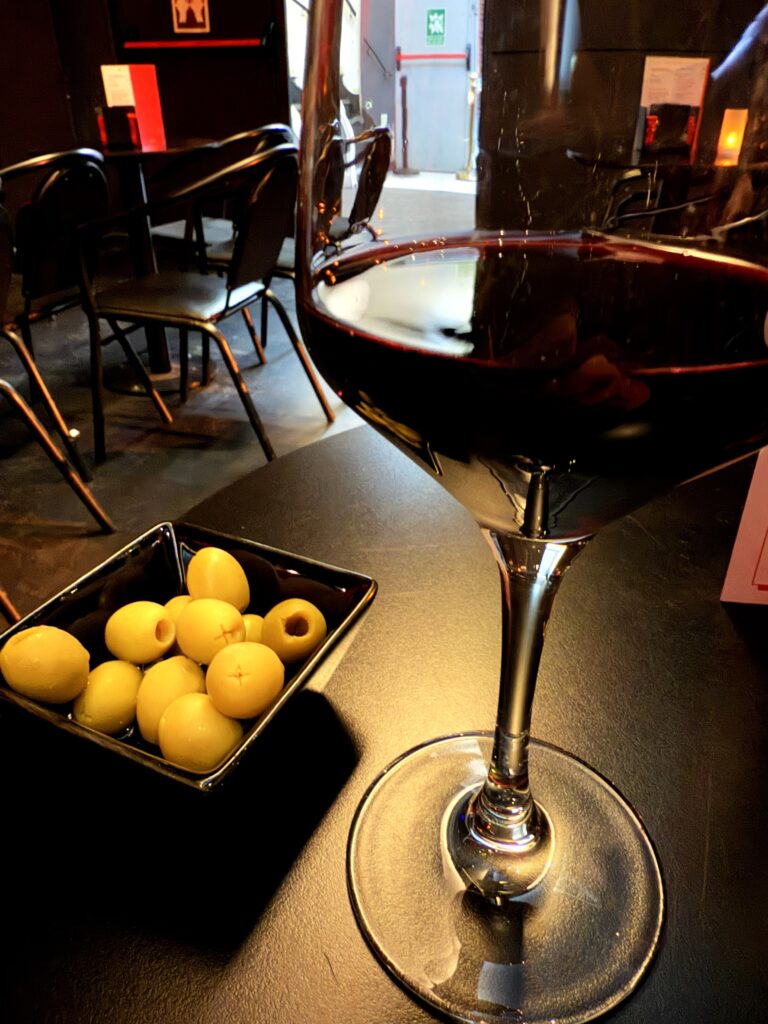 アルコール1杯付きのチケットを購入したので(アルコールなしのチケットよりもよい席が割り振られる)、赤ワインを。十二分に太陽の光を浴びて育ったオリーブがものすごく美味しかった。