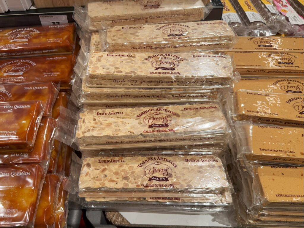 「トゥロン(Turrón)」(クリスマスシーズンに食べられるスペインの伝統菓子)、イビザ島の天然塩(帰国後、女性陣から好評だった)、即席パエリア、チョコレートを購入。