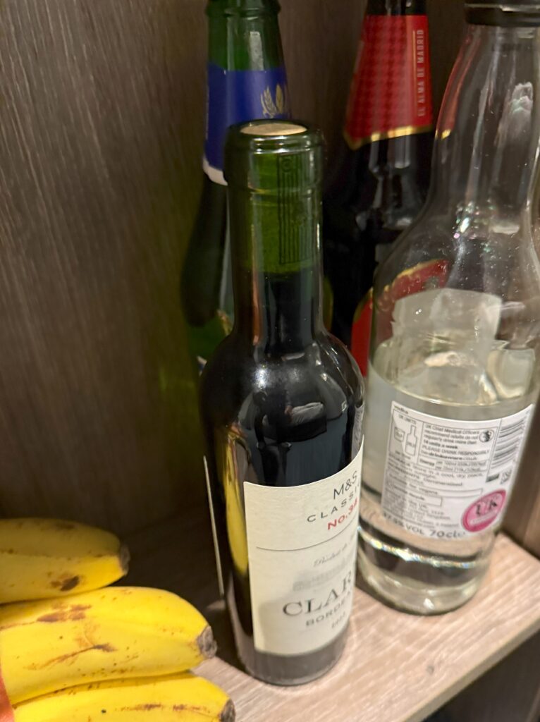 この寒さでは冷えたビールを飲む気になれず。部屋に戻ると、念のため買っておいたミニボトルのワインがあった(自分で言うのもおかしいけど「念のため風邪薬を買う」は分かるが、「念のためワインを買う」ってどういうこと?)。冷えた身体を温めるのにちょうどいいと思い、バーにワインオープナーを借りに行く。スタッフ(夜はフロントとバーを兼務)が「あれ?ここにあったはず」「こっちかな?」とバーのあちこちを探してくれるが見つからない。ハサミの先で開栓を試みてくれるが、コルクはピクリともしない。危ないので「ありがとう。大丈夫だよ」とお礼を伝えて、ワインは諦めた。