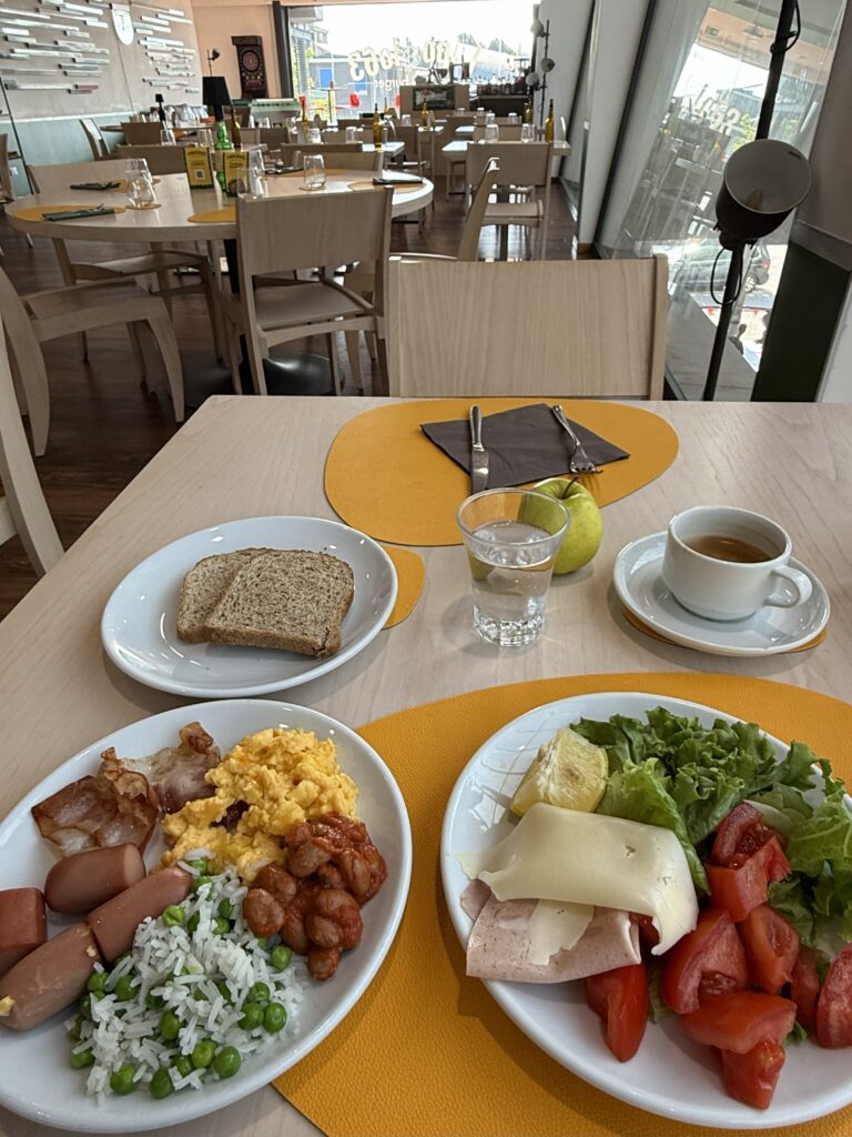 8時半起床。朝食はレタス、トマトなど野菜が充実。