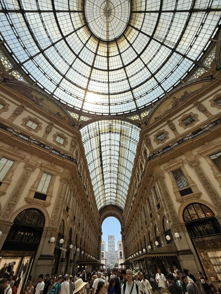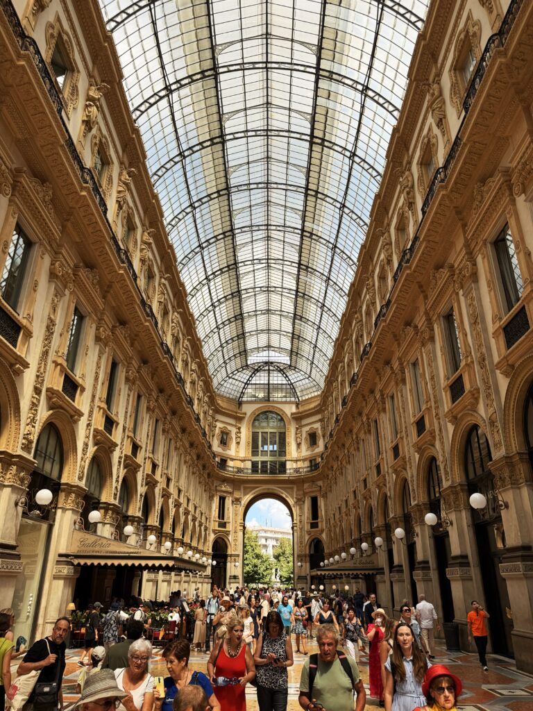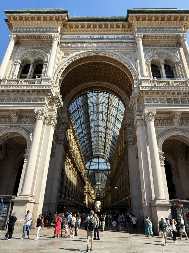 ドゥオーモを出て「ヴィットーリオ・エマヌエーレ2世のガッレリア(Galleria Vittorio Emanuele II)」というアーケードを歩く。イタリアらしい洗練されたデザインだ。