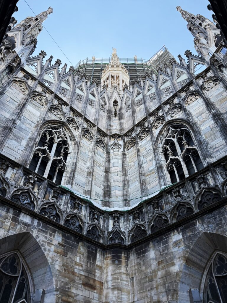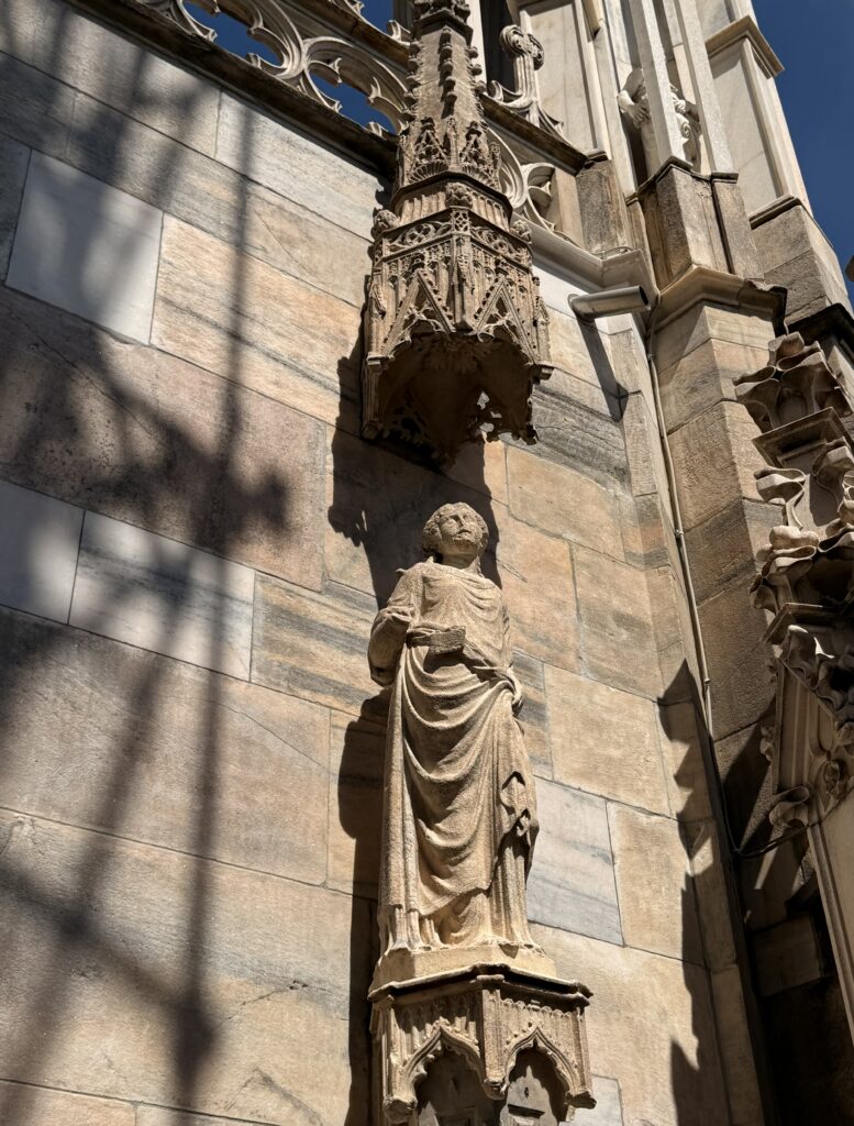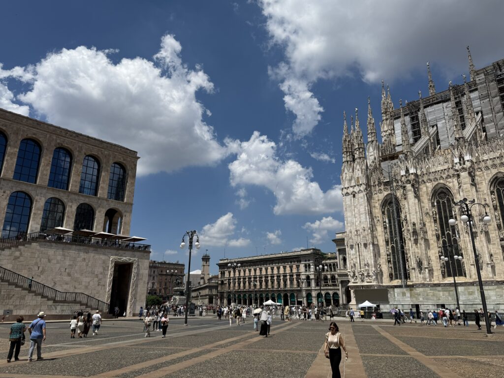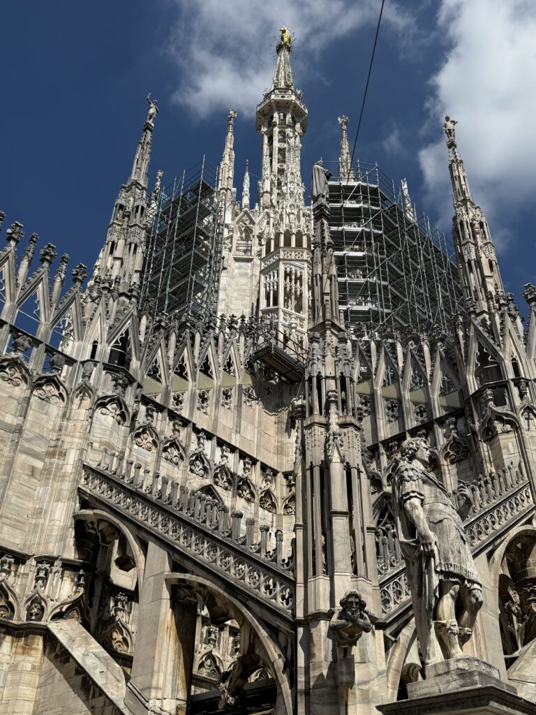 ドゥオーモ駅を出てすぐのところにドゥオーモ広場があり、その一角にドゥオーモがそびえ立っている。圧倒的な存在感だ。