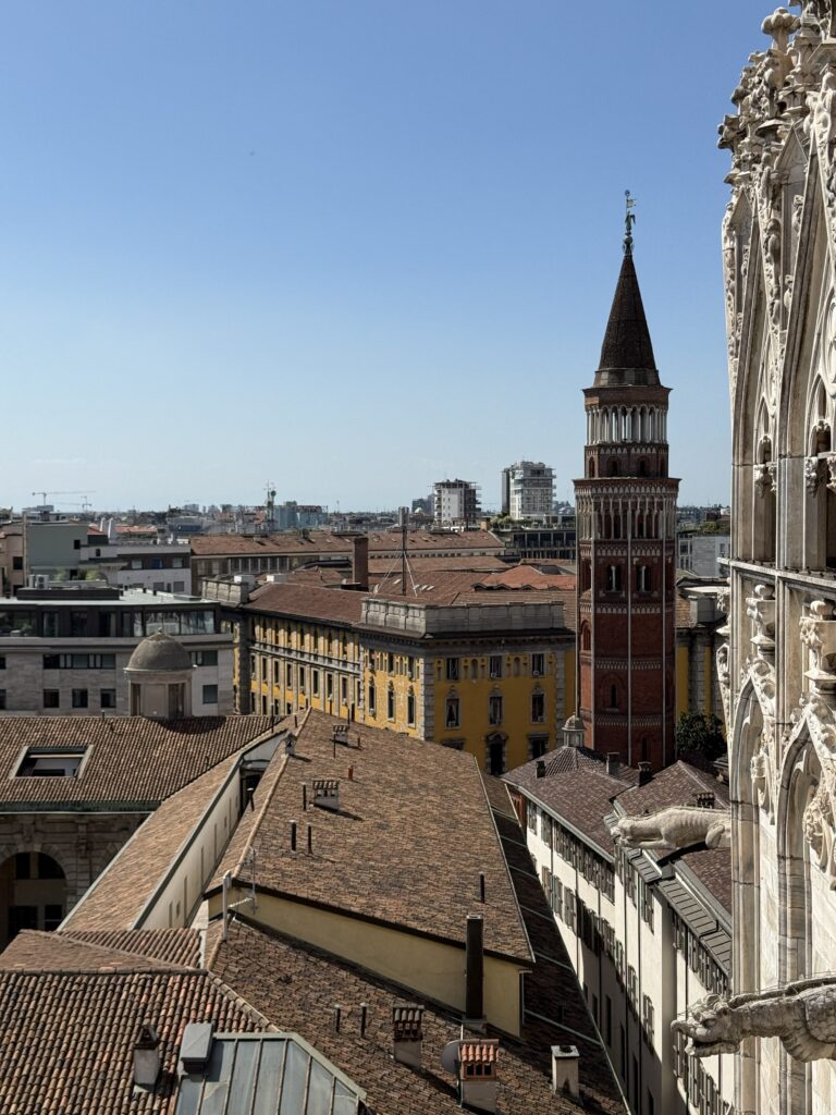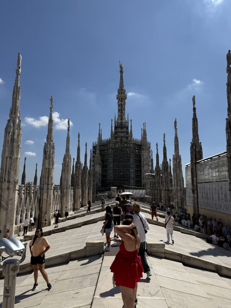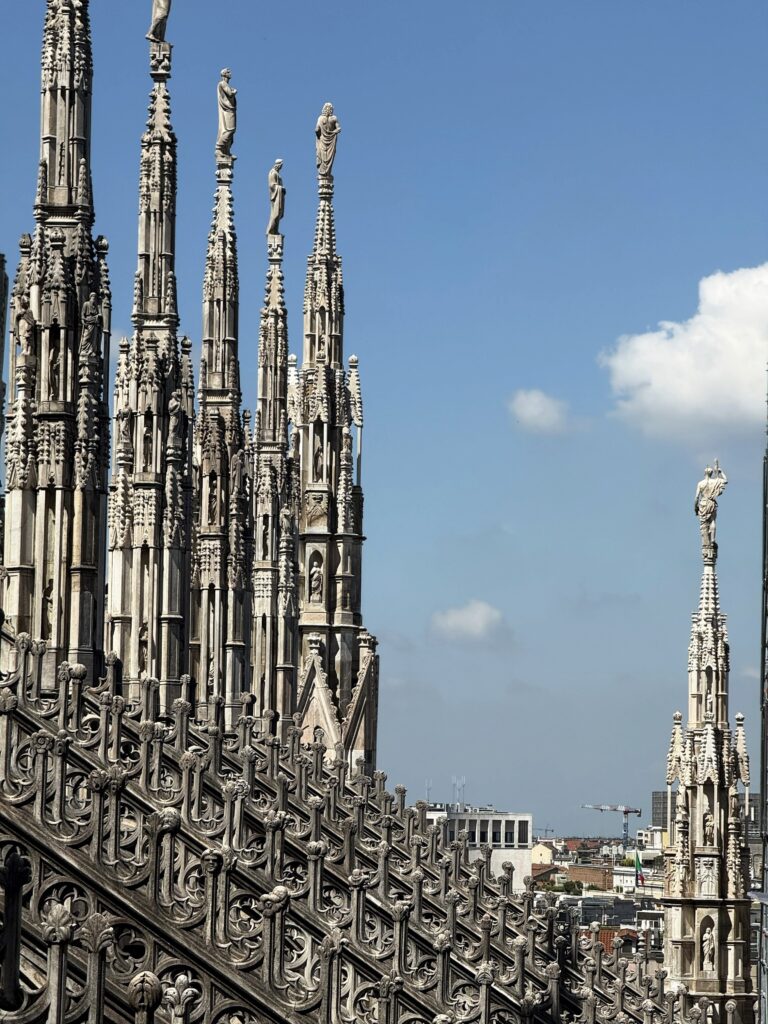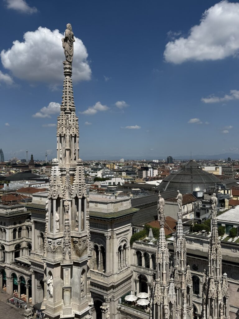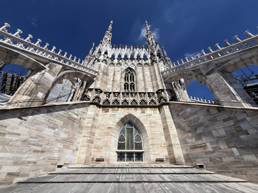ドゥオーモ駅を出てすぐのところにドゥオーモ広場があり、その一角にドゥオーモがそびえ立っている。圧倒的な存在感だ。