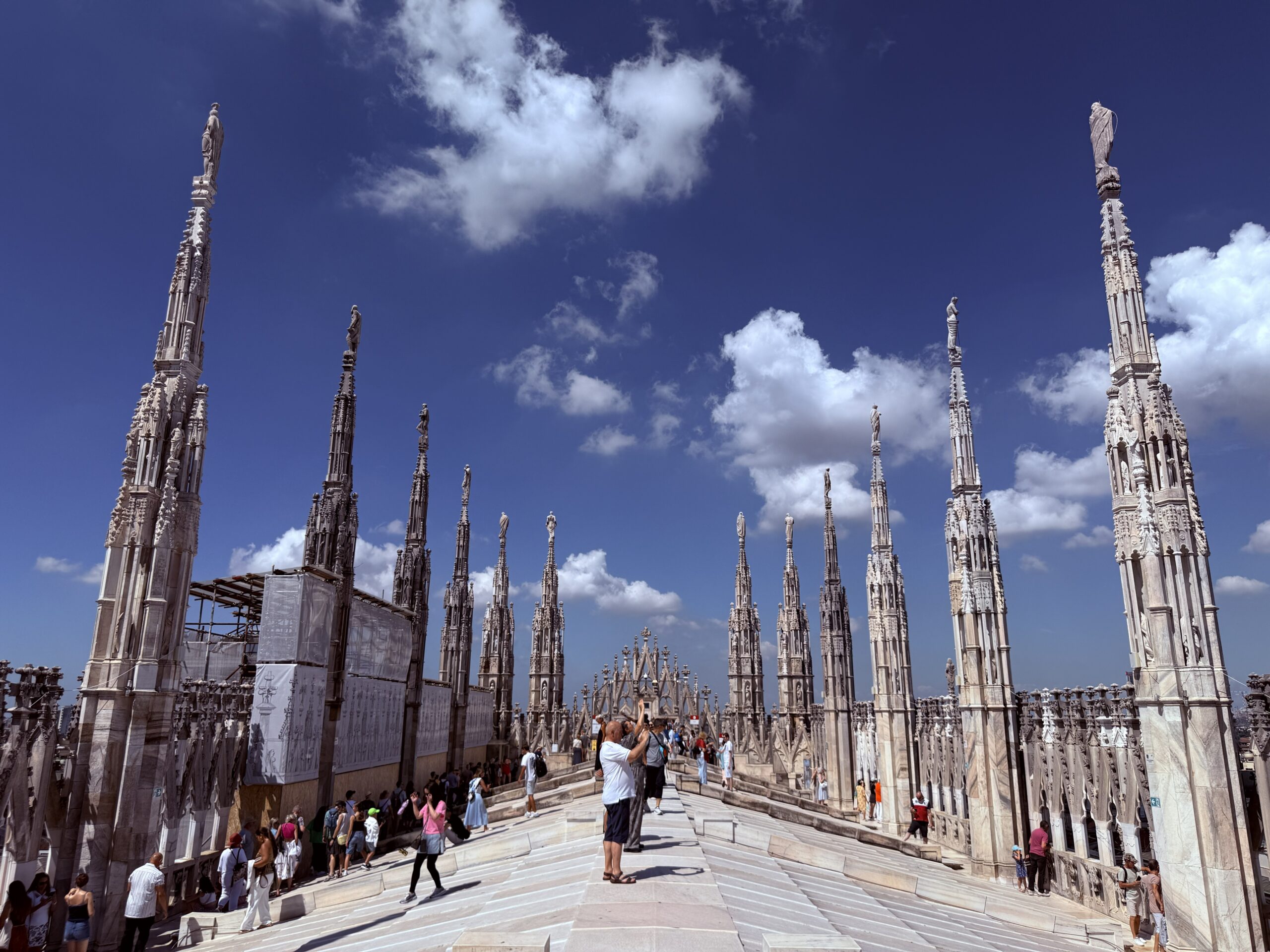 ドゥオーモ駅を出てすぐのところにドゥオーモ広場があり、その一角にドゥオーモがそびえ立っている。圧倒的な存在感だ。