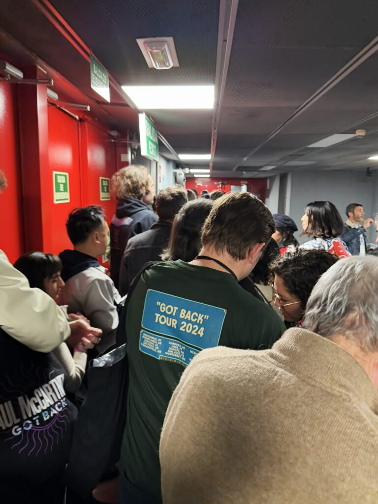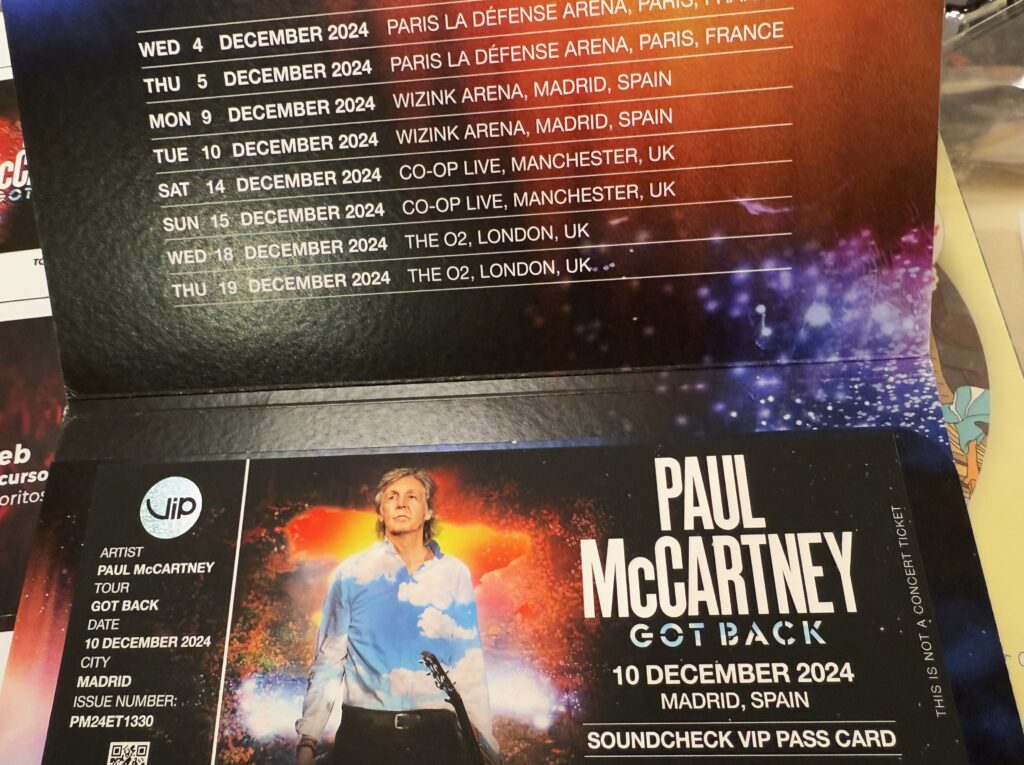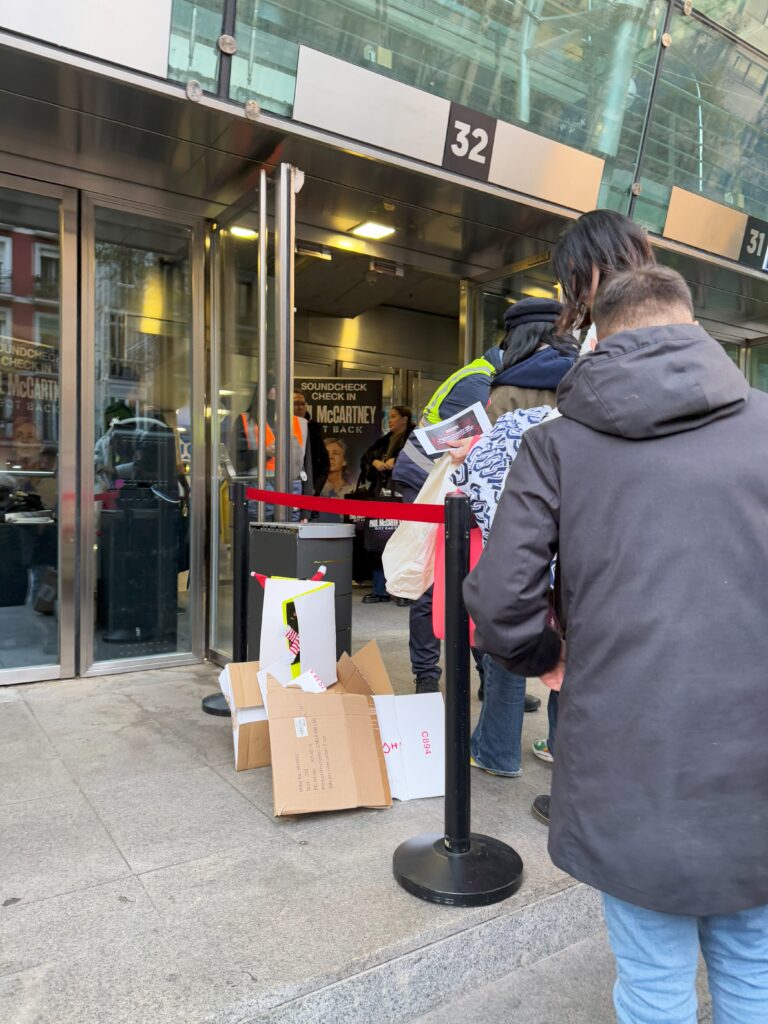 ビル風が強く、日陰で寒い。サウンドチェック開場の17時までは2時間ちょっと。前に並ぶスペイン語を話す男性、てっきりスペイン人だと思っていたら、ベネズエラ人だという(ベネズエラの公用語はスペイン語)。彼の名はカルロス、ベネズエラで矯正専門の歯科医をやっている。「ポールを観るために日本から来た」と言うと、「それはすごい!」とすぐに友達になった。ポールのライブを観ることが長年の夢だったカルロスは、チケット代金の決済に自身のクレジットカードを使えず、親類のカードを使ってなんとかチケットを確保したとのこと。その要因はベネズエラが米国と激しく対立しているからだという。飛行機でマドリードまで来るのも色々と困難があったそうだ。こういう話を聞くと、本当に世界は広いと思う。知らないことばかりではないか。