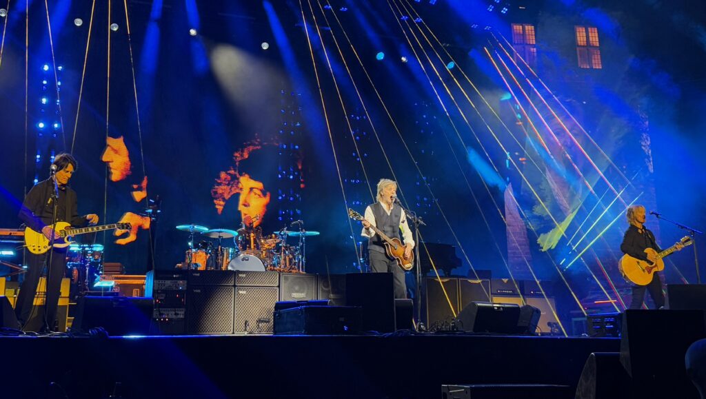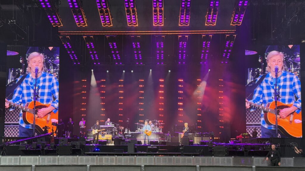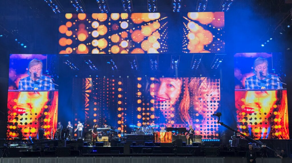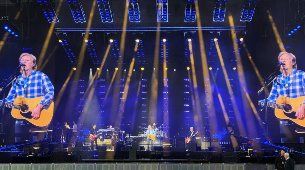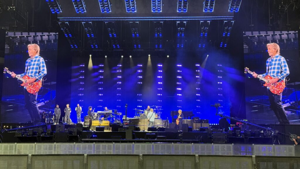 ステージを目の当たりにして感じたのが、ポールの楽器演奏の貢献度の高さ。バンド全体をドライブするベースライン、エッジの効いたエレキのカッティングとソロ、メリハリのあるアコギのフィンガリング、歌心溢れるピアノに「ポールは全身が音楽なんだ」と、改めて実感。昨夜は俯瞰で「ロック・ショウ」を、今夜は眼前で「全身音楽家・ポール」を浴びた。