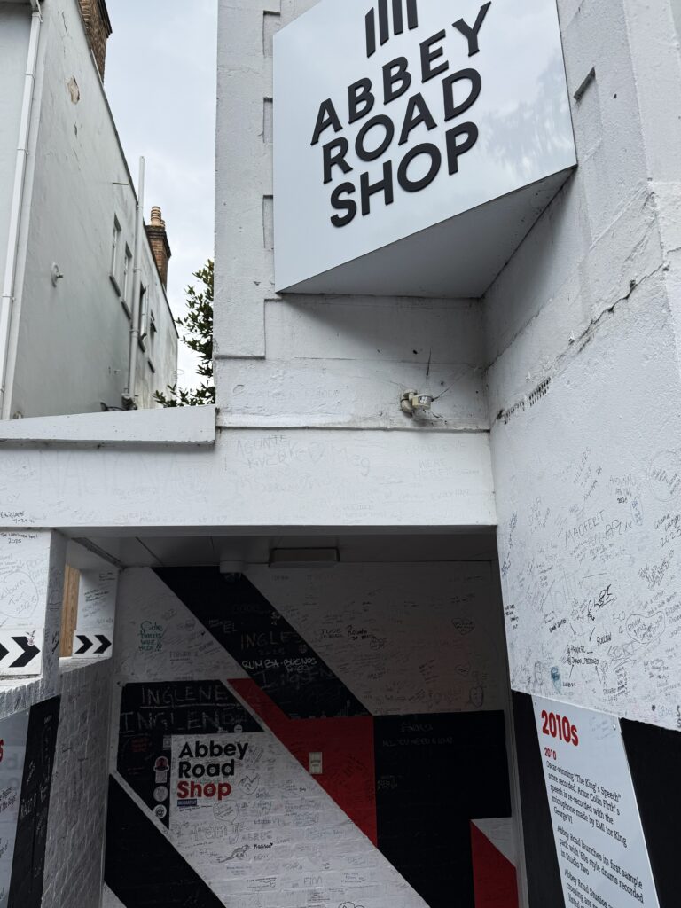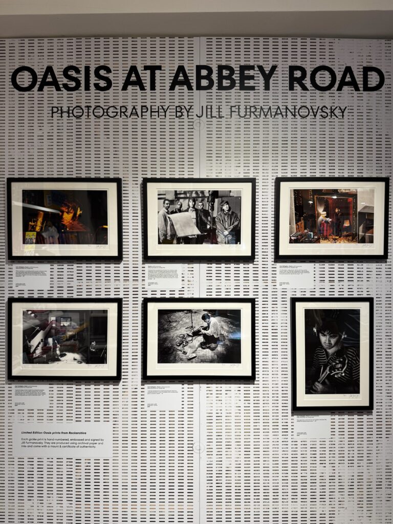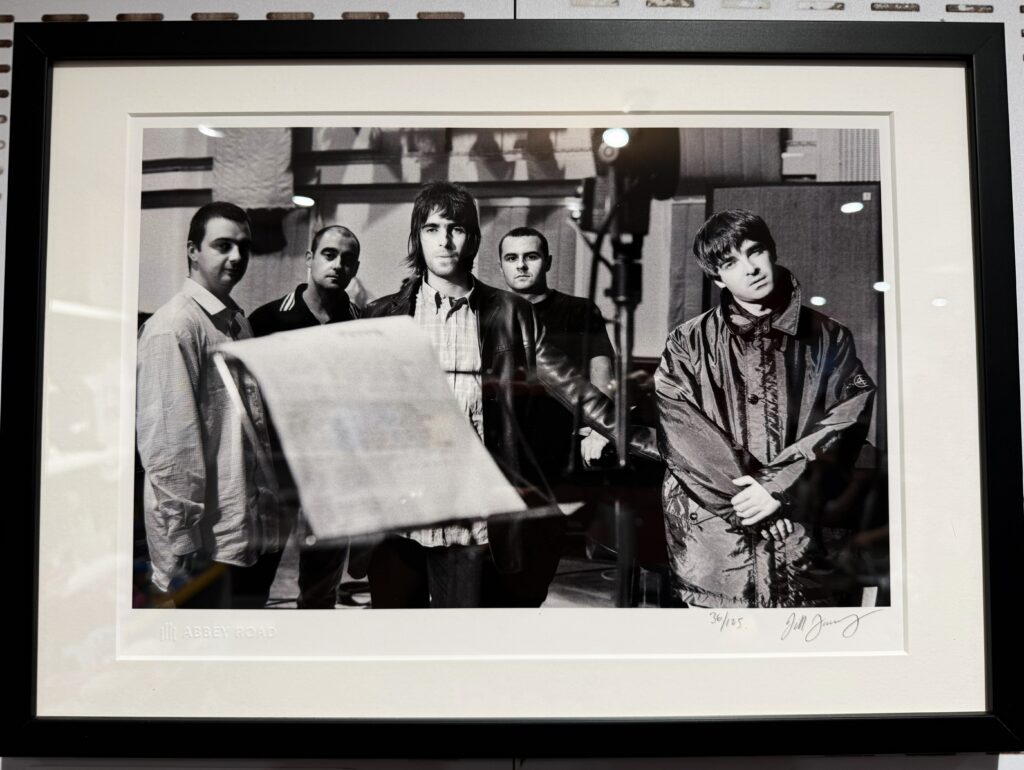 スタジオに隣接したアビー・ロード・ショップの一角では、小規模なオアシスの写真展「Oasis at Abbey Road」をやっていた。