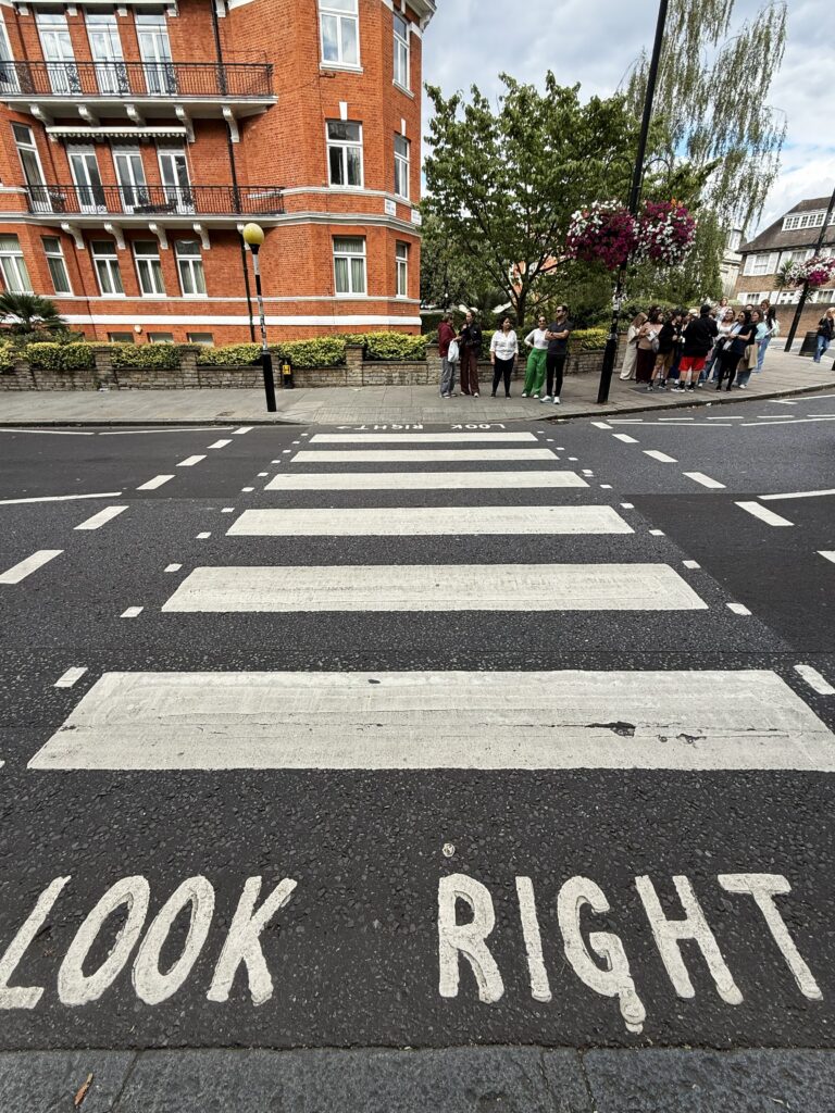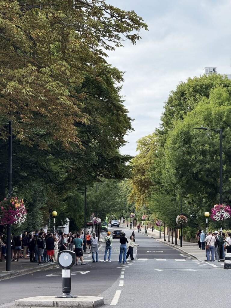あの世界一有名な横断歩道では、今日も世界中から来たビートルズファンが自動車の往来の隙を狙って写真を撮っている(アビー・ロードは交通量が多い)。