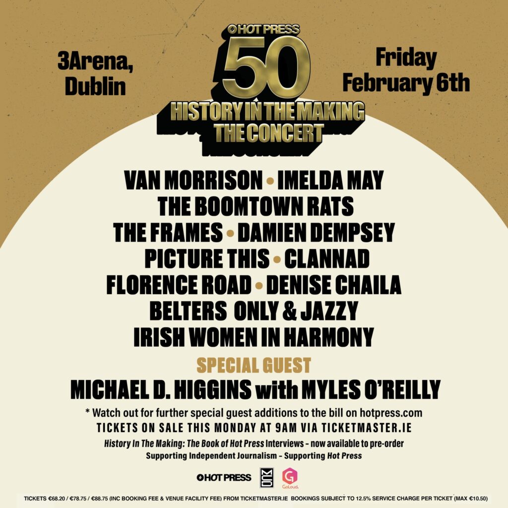今日はダブリンに移動してアイルランドのエンタメ・政治雑誌「Hotpress」発足50周年を記念した「Hotpress – History In The Making The Concert」を観る。お目当てはヴァン・モリソンとグレン・ハンザード率いるザ・フレイムスで、それ以外に知っているのはボブ・ゲルドフのブームタウン・ラッツくらいだが、アイルランドのミュージシャンが多数出演するので楽しみ。
