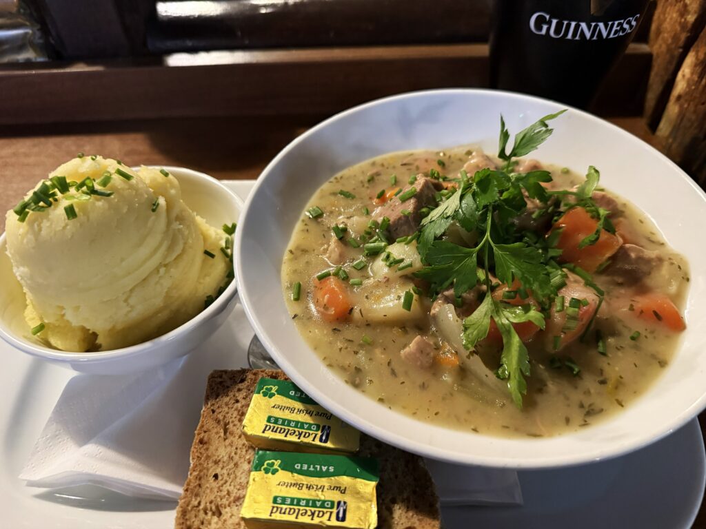 昨日ヴァン・モリソンとエンカウントできたことをギネスでお祝い。この店ではじめてのアイリッシュシチューとマッシュポテトを注文。アイリッシュシチューは香草が不要なくらいラム肉に臭みがなくて美味しい。マッシュポテトは塩気とバターたっぷりで濃厚な味わい。