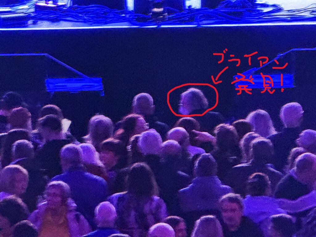 マスクして見覚えのあるシルエットだなぁ、と思ってスパートフォンのレンズを拡大したら、アリーナ最善列にブライアンを発見!雨の中頑張ったなぁ、ブライアン。