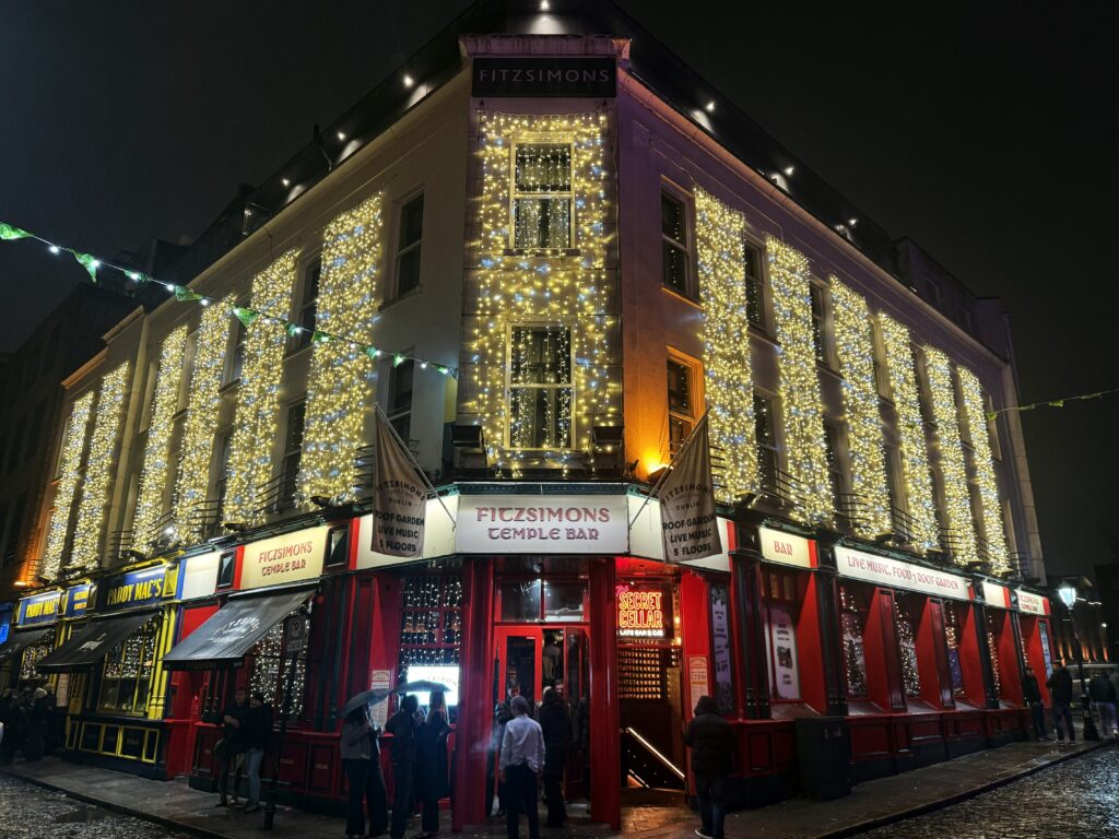 食事を終えて店を出ると、テンプルバーに火が灯っていた。