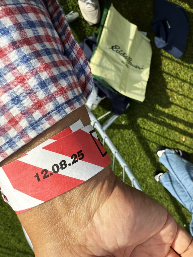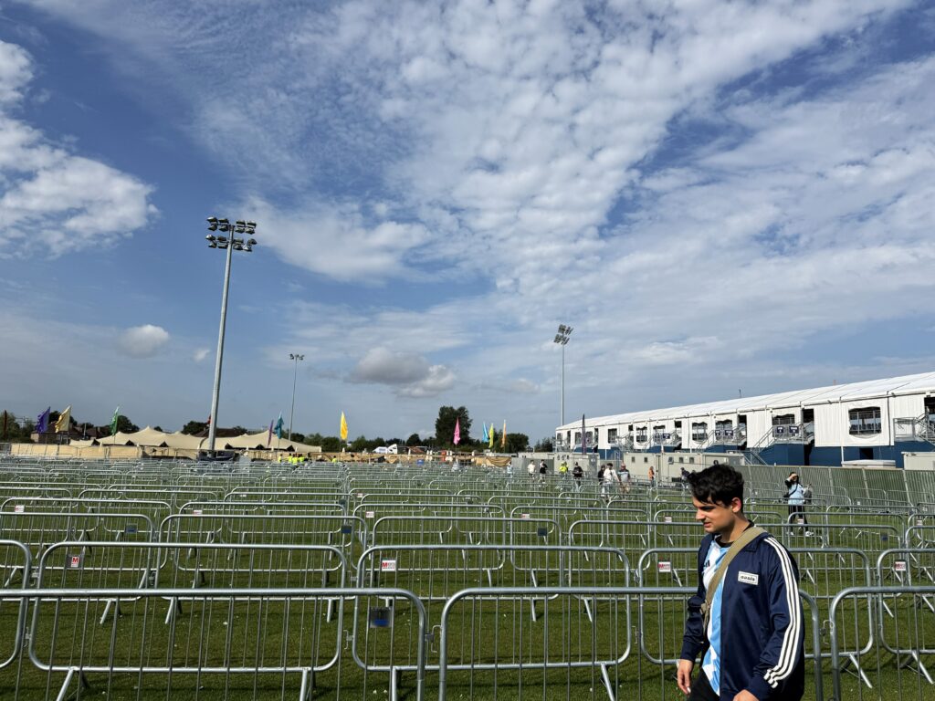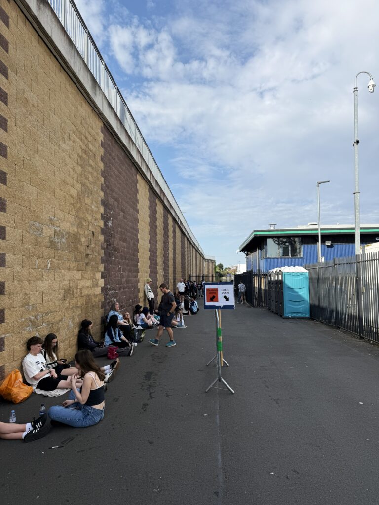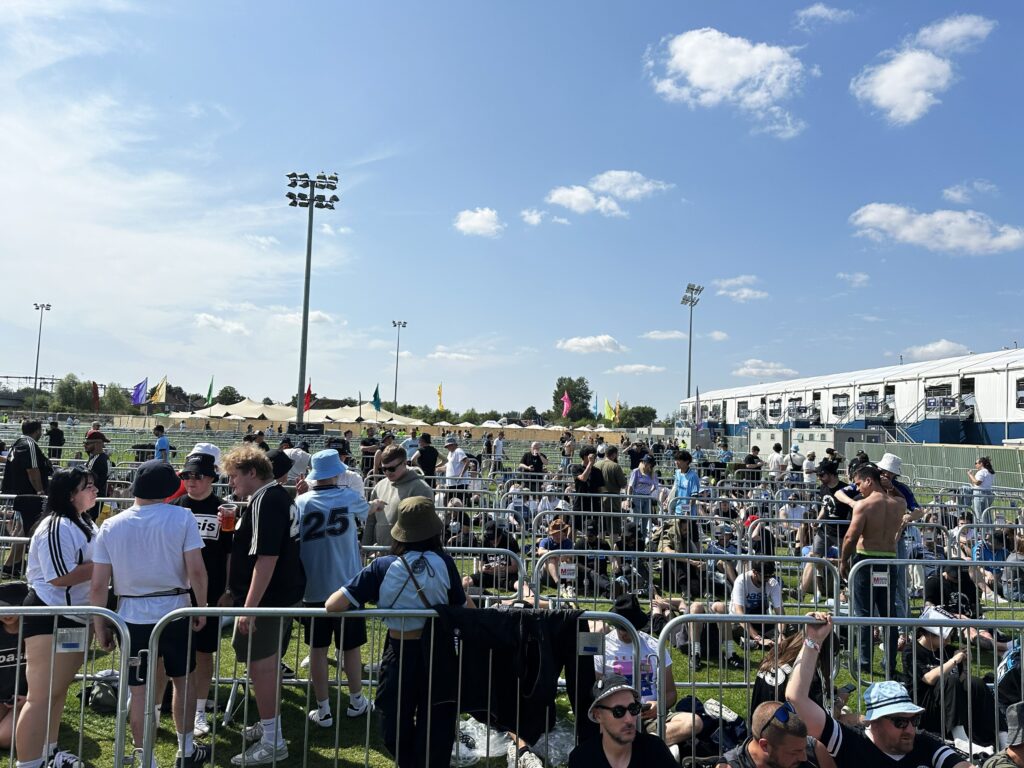10時過ぎにセキュリティチェックとチケットのスキャンを完了し、フロントスタンディングのリストバンドをもらう。そのままゲート前まで進んで待機列を作る。他の会場と比べて非常に早い展開だ(一般的にはゲートに入ってからリストバンドをもらう)。