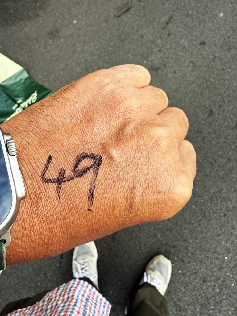8時起床。晴れ、気温19℃。行列日和なのでウーバーでスタジアムに向かい、9時15分到着。ファンによる自主付番の番号は49番。