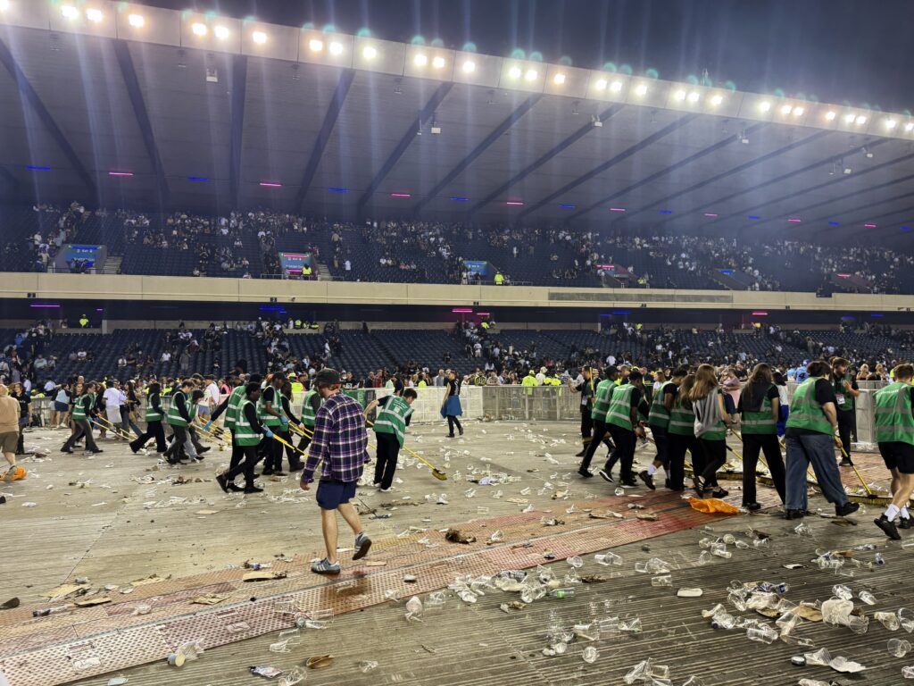 通常のスタンディングチケットはセキュリティスタッフの先導でスタジアムをぐるっと回ってから入場。ゲートを通る前に「走ったり押した人は列の後ろに回す」と注意があったので、大きな混乱はなかった。今までの会場で一番オーガナイズされた運営だ。
