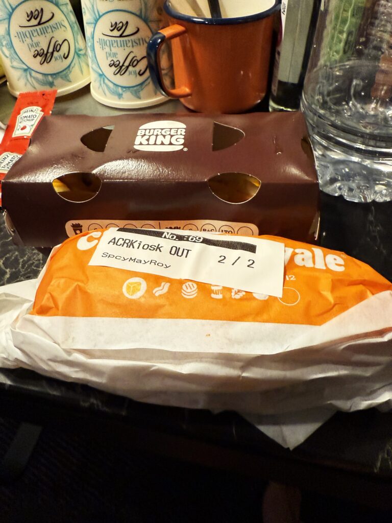 これでイギリスにおける全15公演が終わったので、バーガーキングのチキンサンドウィッチと赤ワインで一人ささやかに打ち上げた。2時就寝。