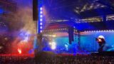 開演まで隣のシカゴから来た同世代の女性と話す。このツアーをカーディフからずっと追いかけているそうで、お互い酔狂な者同士で話が合った。オアシスの出番の前に最前列の夫婦2組のうち、旦那2人が酒を買いに行ったが、なかなか戻ってこない。奥さんは携帯で何やら話している。するとシカゴ女性が「男性2人は戻ってこないわよ」と教えてくれる。「わざわざ高いVIPチケットを買って最前列を確保したのにそんなことある?」と思ったけど、彼らは本当に戻ってこなかった。こんなに人が密集したところより、スペースに余裕があるところで酒を飲みながら観ることにしたようだ。これで少し視界が開けた。