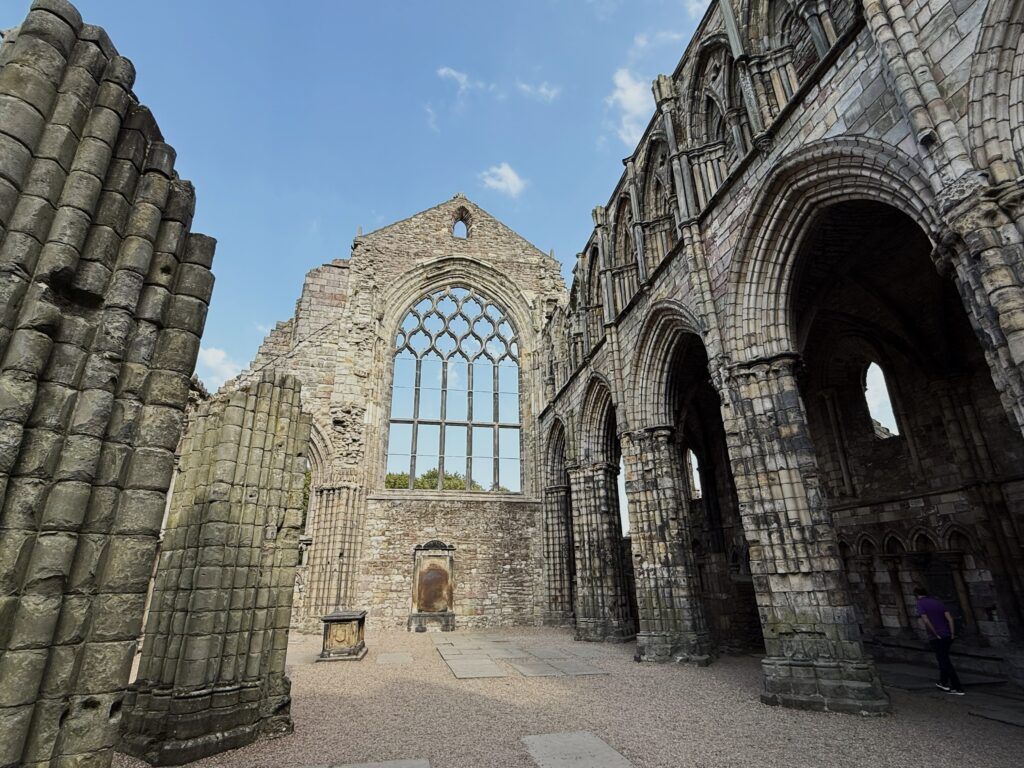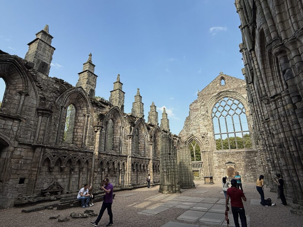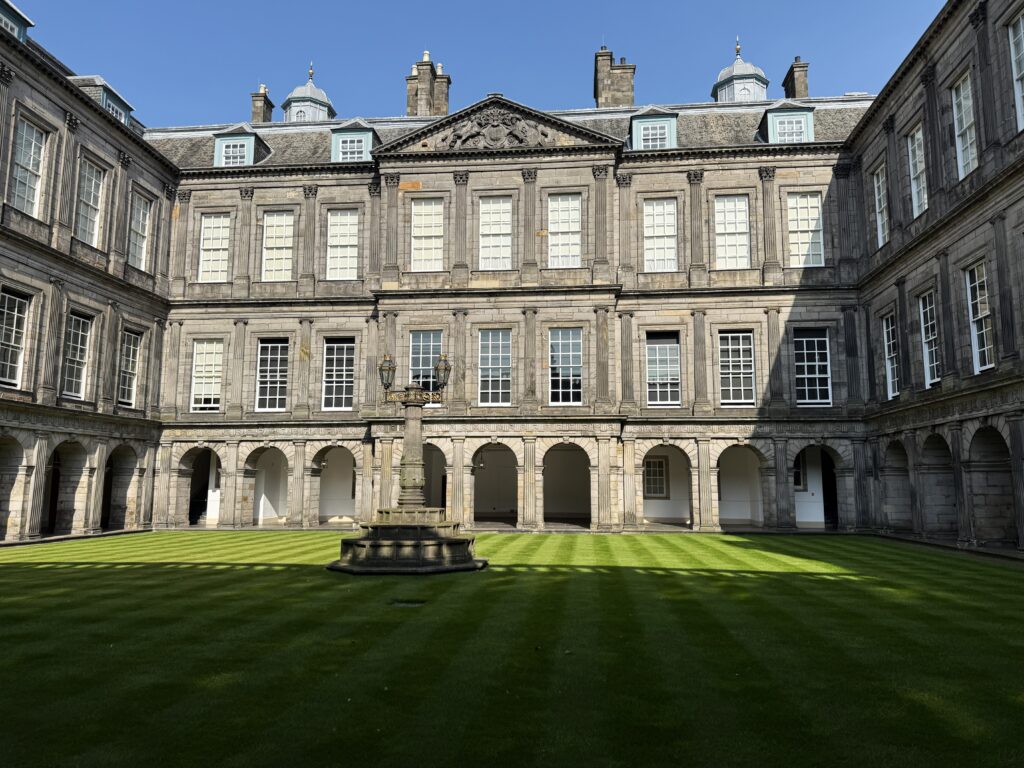 ロイヤル・マイルの東端にあるスコットランドにおける英国王室の宮殿、ホリルードハウス宮殿。壁を覆い尽くす数々のタペストリーが見事(宮殿内は撮影禁止)。