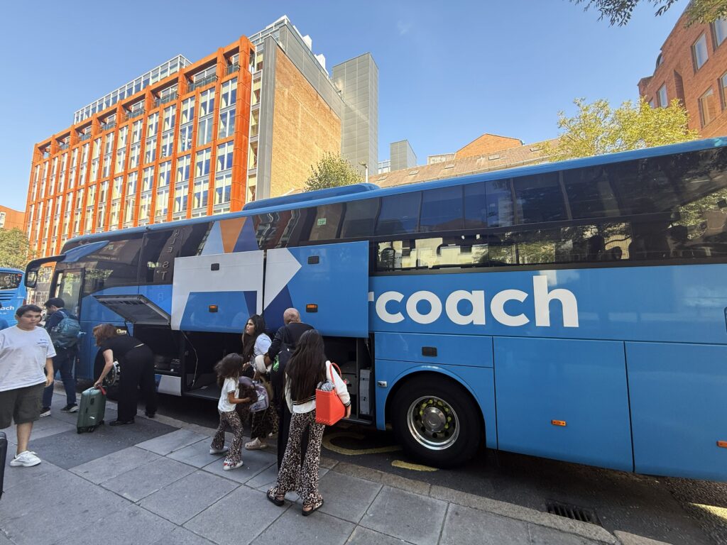 10時、発車時間の30分前にコーチステーションに着くと、既に乗客が並んでいた。10時半、ゴールウェイを出発。車内は空いていて、ラッキーなことに隣は空席だ。