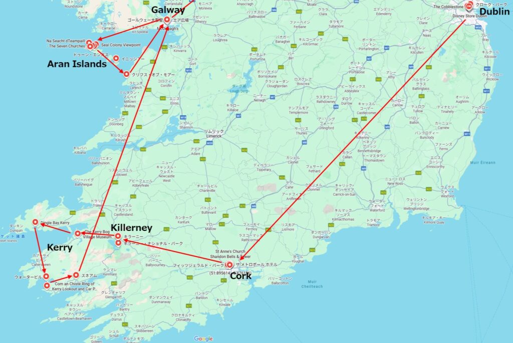 アイルランド内の行程