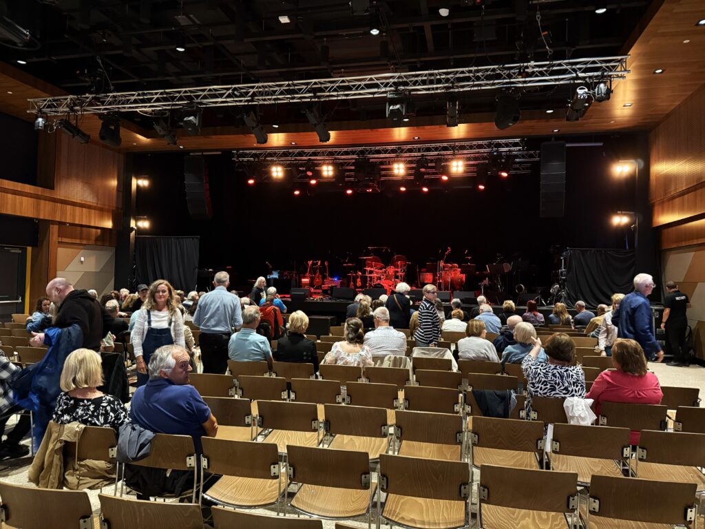 定刻の18時半に入場すると、アメリカ人グループが最前列中央の席に洋服を置いて席取りをしていた(計8席ほど)。彼らは行列していた僕らとは別口で先に入場しており、これはアンフェアだ(他の会場で、最前列の席がVIP用にあらかじめ確保されていたことがあるが、ヴァンのライブでこれほど利己的な行為を見たのは初めてだ)。グループの1人の女性が申し訳なく思ったのか、席を交換してくれて、なんとか最前列中央から6席目を確保。席も決まったので、会場をチェック。