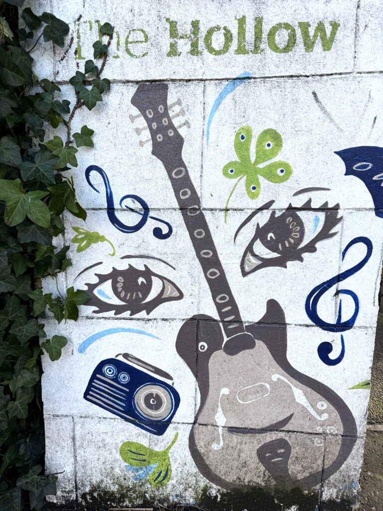 路地裏に入ると、地域のアーティストが描いたヴァンの壁画があった。