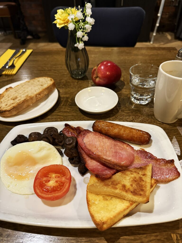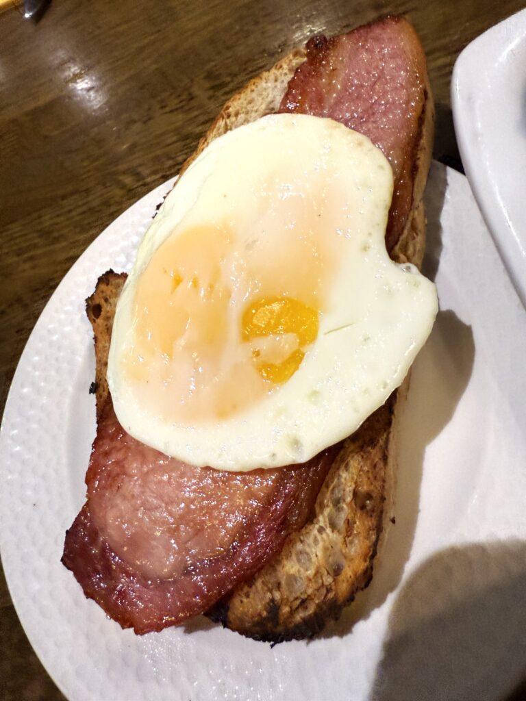 9時起床。朝食にはトーストしたパンにベーコンと目玉焼きを乗せて食べる。安定の美味しさ。