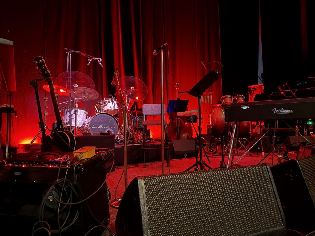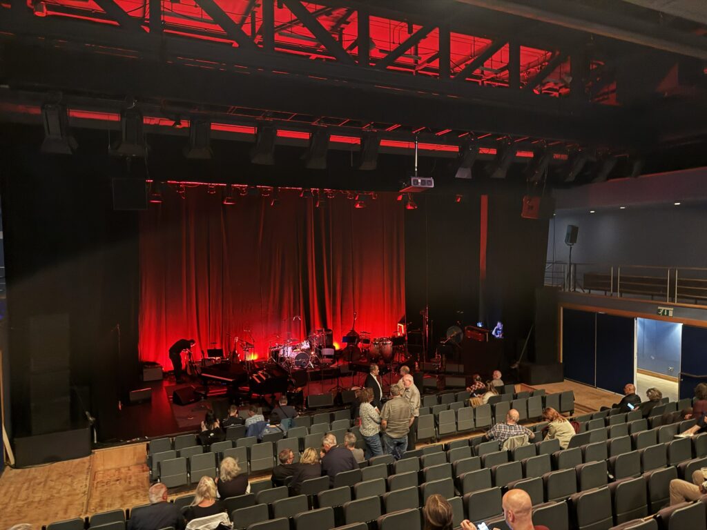 19時にライブ会場到着。昨日、一昨日は「Rock’n’ Roll & Swing Session」、今日は「ウォーターフロントホール」の「スタジオ」という小規模な会場で、3日連続のライブ。「スタジオ」の収容人数はわずか350席。英語でいうと、”intimate(親密な、密接した)“な会場だ。そして、明後日、明明後日には同じ建物内にある大きな「ウォーターフロントホール」(収容人数2,200人)でヴァンの80歳の誕生日を祝うコンサートがあるので、今夜はそのリハーサル的な位置付けでは?それにしても6日間で5回もライブをするなんて、老人虐待ではないかと心配してしまう。