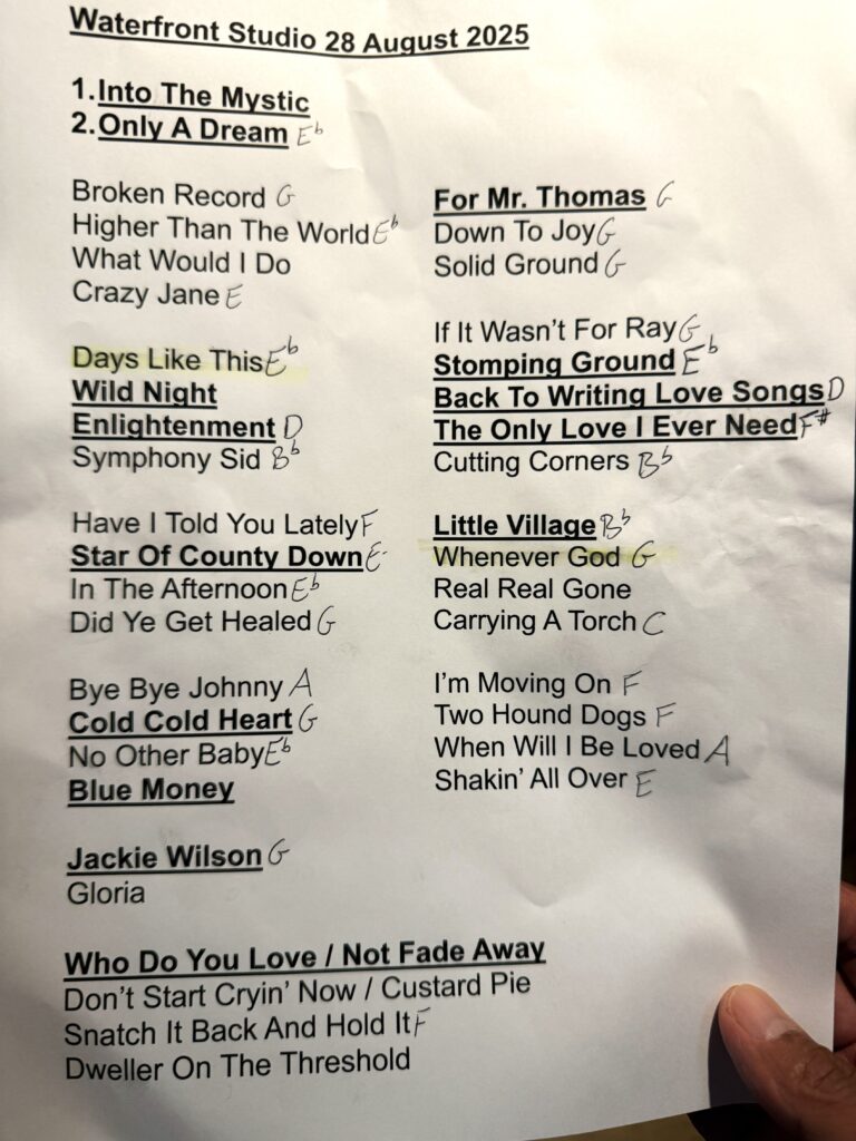 ちなみに3ヶ月後の2025年11月、以前よりヴァンと親交のあるボブ・ディランがここ「ウォーターフロントホール」で2日間演奏し、2日目の公演をヴァンの「Going Down to Bangor」のカバーで締めくくった。