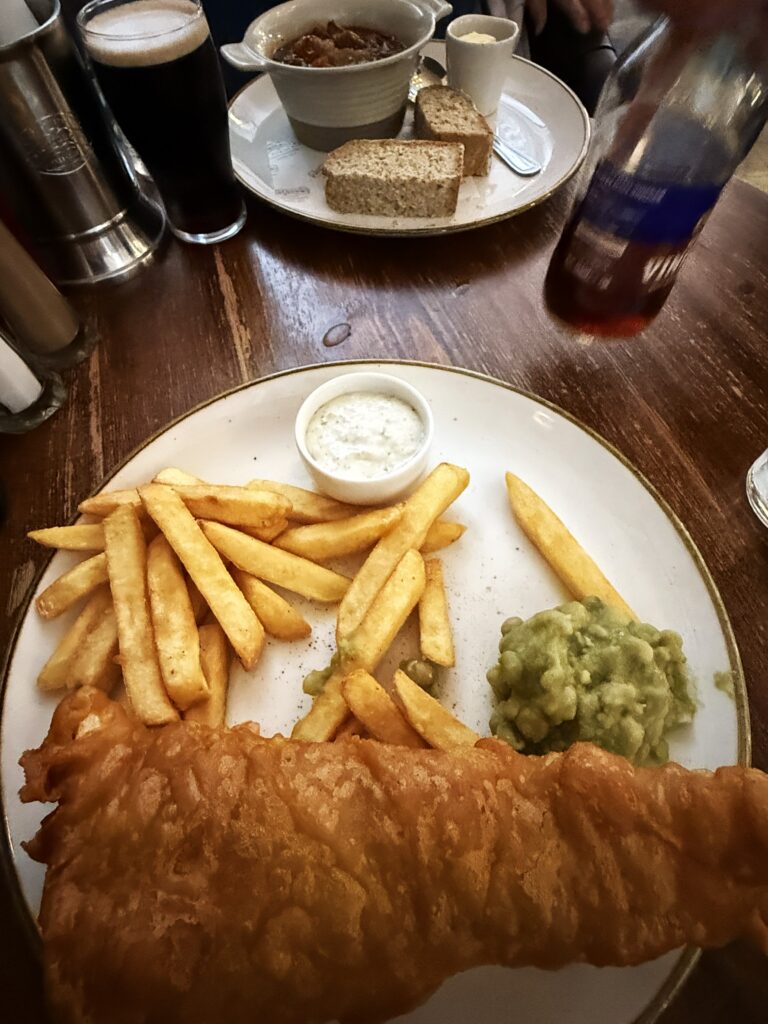 Fさんはギネス(ハーフパイント)とアイリッシュシチュー、僕はフィッシュ&チップスとギネス(パイント)を注文。食事中の話題は、ヴァンの最新作『Remembering Now』の感想やFさんが最近始めたという瞑想の話。彼女は『Remembering Now』を聴いていると、9歳まで暮らした生まれ故郷を思い出すと言う。デザートにアイスクリームを食べて、1階のバー「クラウン・リカー・サロン」に降りる。