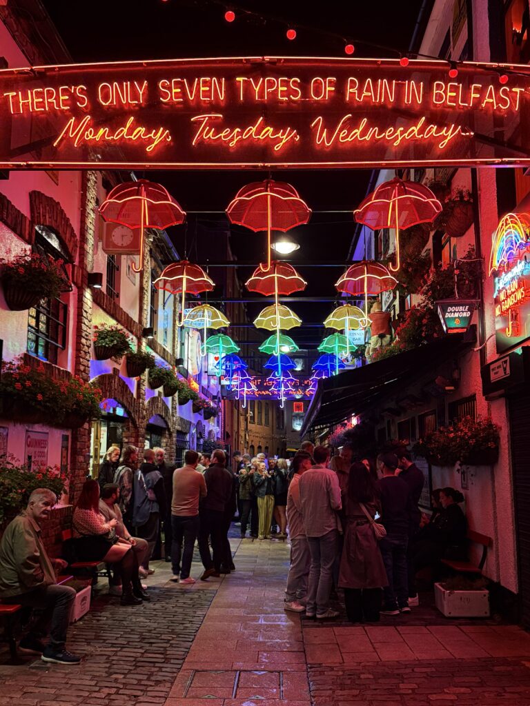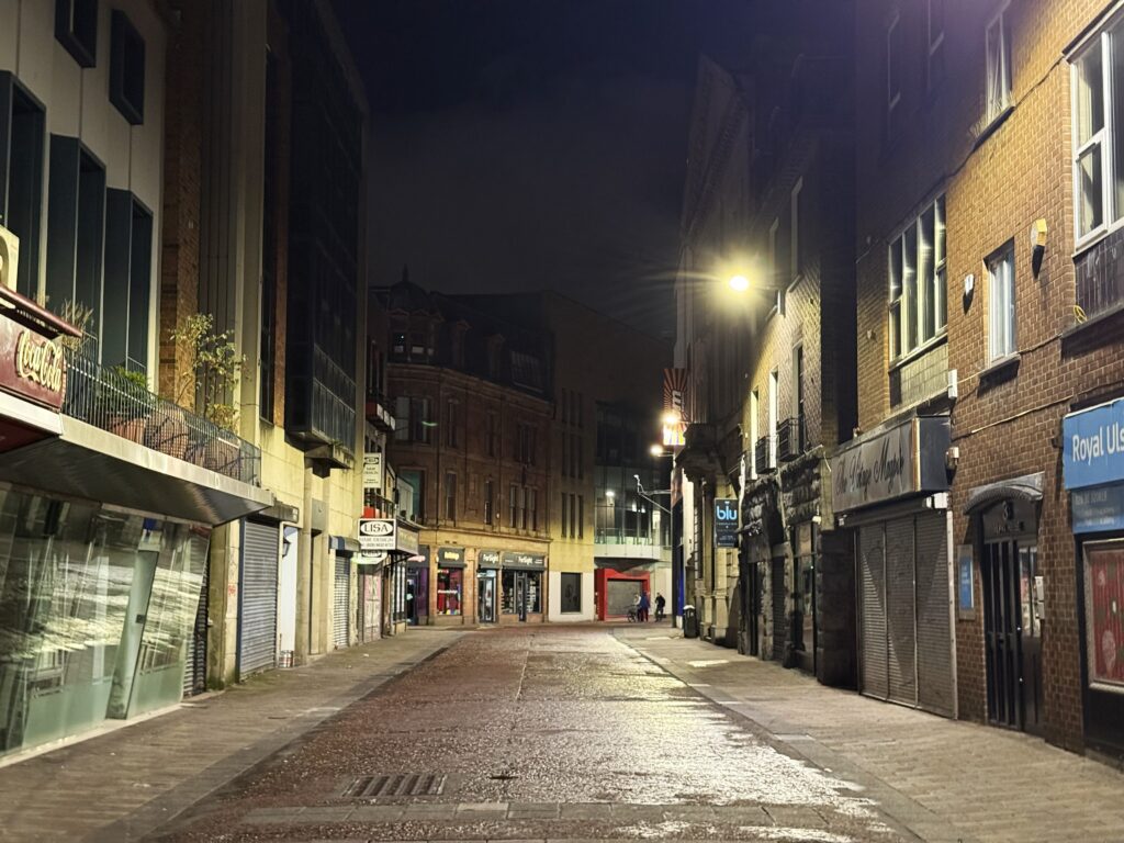 電車でベルファスト中心地に戻り、夜の街を散策。