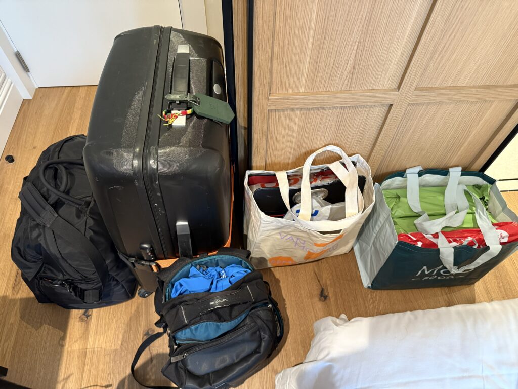 ロンドンのホテルをチェックアウトする時に荷物は5つになっていた(オアシスのVIPグッズ分、1つ増えた)。こんなに多くの荷物を自宅まで無事持ち帰ることができるだろうか?