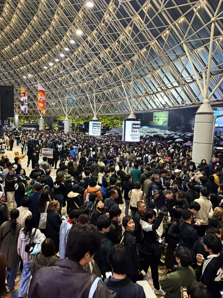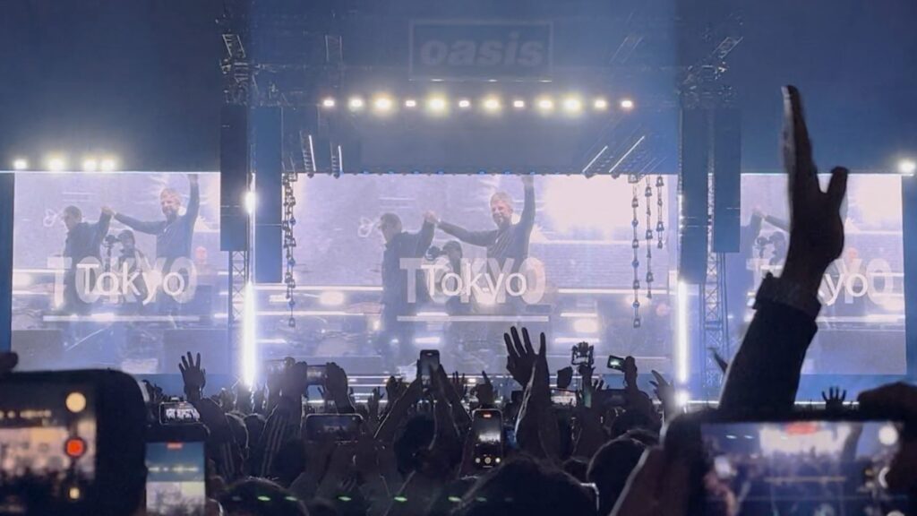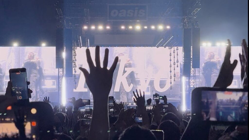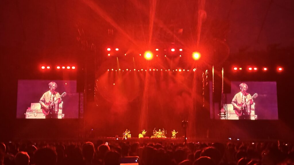 周囲から聞こえてくるのは日本語だけで、海外からの観客はあまり見かけない(前述のチケットぴあの問題に起因していると思う)。10〜20代の観客が多く、ざっと見た感じ、半数前後が若い客層だ。これはオアシスが解散後も新しいオーディエンスを獲得し続けていることを意味し、ビートルズやローリング・ストーンズのような存在になりつつあることを示している。