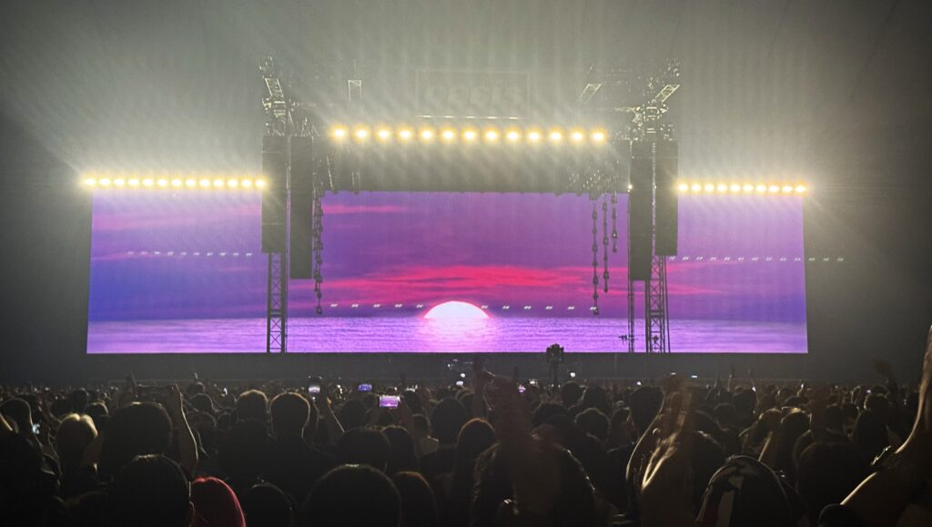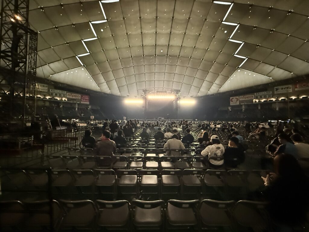 アリーナはほぼステージからの照明のみで非常に暗い。こんなに暗いドームは初めてだ(そういえば、2009年のオアシスのライブ会場だった幕張メッセの会場内も暗かった)。